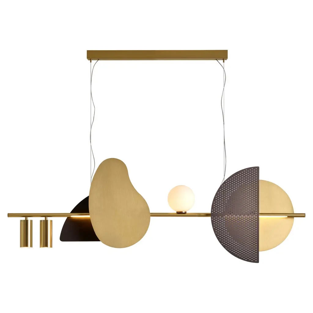 Designed by Kateryna Sokolova, the EL Collection is a sculptural lighting series inspired by the geometric purity of the early 20th-century Suprematist movement, paying homage to iconic artists El Lissitzky and Kazimir Malevich. With minimalist silhouettes rooted in squares, circles, and lines, each EL lamp evokes the visual language of avant-garde abstraction—transforming light into an architectural statement.Crafted in solid brass, copper, or stainless steel, and also available in custom RAL colors, the EL collection offers designers and architects flexibility to tailor pieces for both residential and commercial interiors. Its clean, vertical lines and precise geometry introduce clarity, sophistication, and artistic weight to any setting.Perfect as a standalone sculptural accent or installed in clustered compositions, EL pendant and floor lamps strike a balance between ambient light and collectible design. Whether highlighting specific objects or anchoring a space with bold elegance, EL lamps serve as functional art objects—blending industrial refinement with timeless modernism.Designer: Kateryna SokolovaMaterials: Brass / Copper / Stainless steelDimensions: H 32 cm x W 115 cm x D 15 cmElectrification: EU version: 3 x LED 10WG9 220 -240V50 HzUSA version: 3 x LED 10W G9 110V 60 Hz.