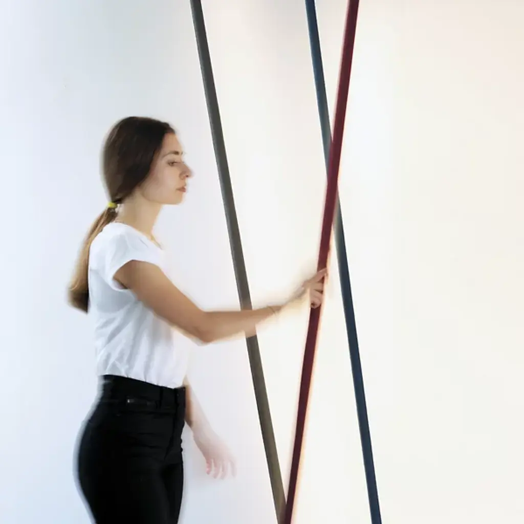 The Elastica LED Floor Lamp by Martinelli Luce captures the soft, flexible, and interactive nature of light in this design from Innoceznzo Rifino and Diego Rossi of Studio HABITS. Rotating around the idea of how a user naturally interacts with a lamp, this minimal design operates with people’s instinctive gestures, allowing this strip of light to easily turn on, off, and dim when touched. Anchored by a cylindrical counterweight base, a strip of elasticized fabric connects the floor to the ceiling, adapting to different heights to fit into various space requirements and lending a simple, smart, and artful touch to the rooms it brightens.