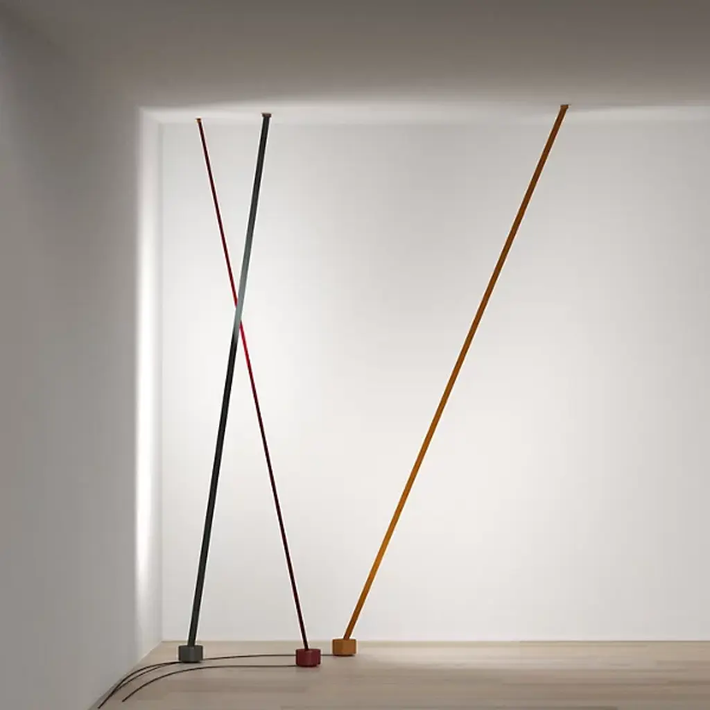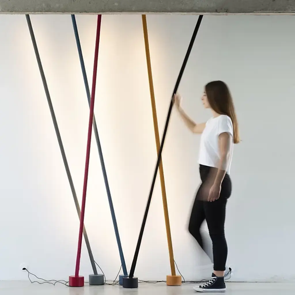 The Elastica LED Floor Lamp by Martinelli Luce captures the soft, flexible, and interactive nature of light in this design from Innoceznzo Rifino and Diego Rossi of Studio HABITS. Rotating around the idea of how a user naturally interacts with a lamp, this minimal design operates with people’s instinctive gestures, allowing this strip of light to easily turn on, off, and dim when touched. Anchored by a cylindrical counterweight base, a strip of elasticized fabric connects the floor to the ceiling, adapting to different heights to fit into various space requirements and lending a simple, smart, and artful touch to the rooms it brightens.