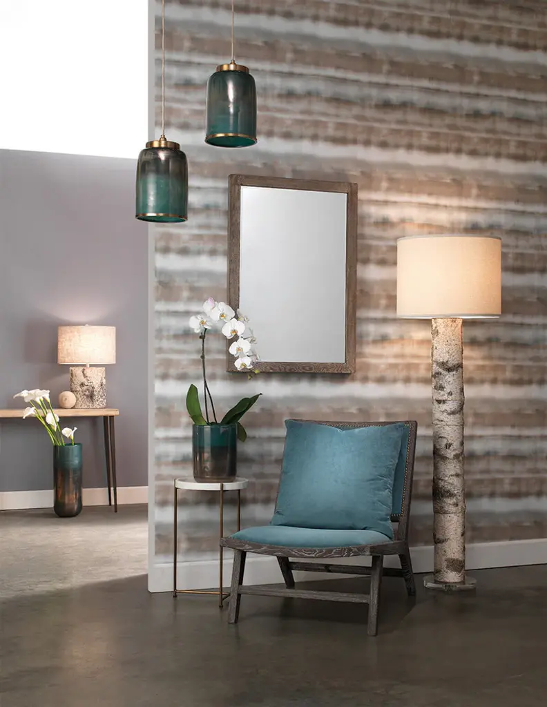 Birch veneer is wrapped around the modern cylindrical shape of our beautiful floor lamp to highlight the texture and tones of the naturally occurring variations in the wood. Each piece is a unique way to bring the outdoors inside.Finish will vary, variations in natural wood pattern, texture and color will occur. • 68.5"H x 20" dia. Weighs 20 lbs.• Hand Finished Natural Birch Bark Veneer over Sturdy Resin Base. Fabric Shade.• UL Listed. Uses 1 max 150W standard Type A bulb (not included). 3 way socket. 96 inch cord.• Heirloom Quality - Expertly hand crafted and hand finished. Due to the hand crafted nature of this piece, each piece may have subtle differences.