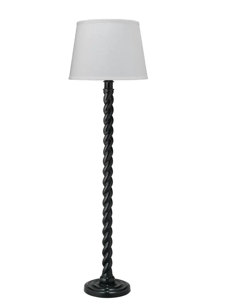 Elegant Twisted Black Metal Pole Floor Lamp Classic 65" Simple Ribbed