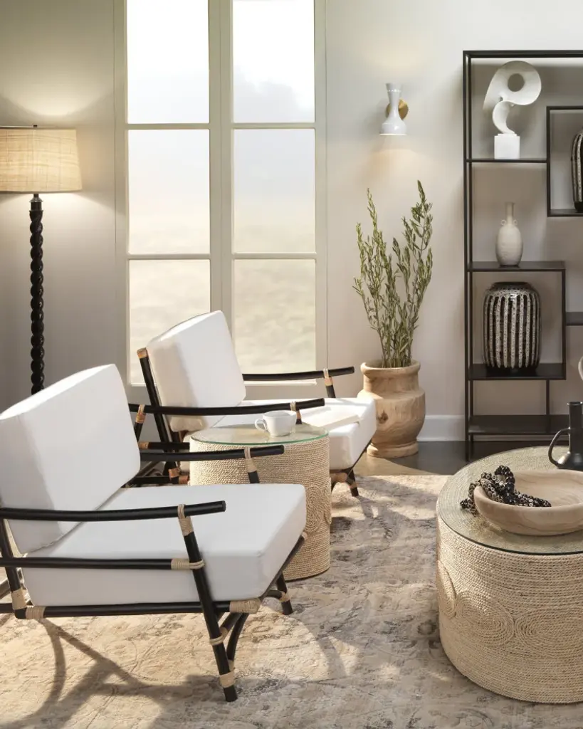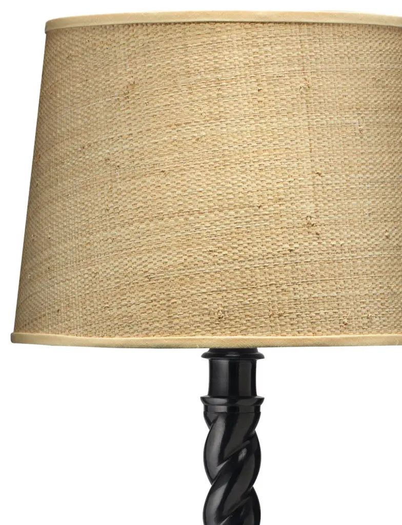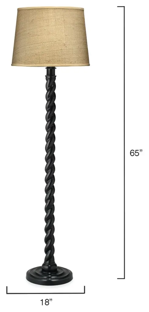 Our lamp can go anywhere from modern to transitional. The minimalist, classic twisted base pairs perfectly with the raffia shade. Each lamp has been uniquely designed to stand alone as a piece of sculpture in a room. They are weighted and substantial with incredible details to stand the test of design time.• 65"H x 18"W. Weighs 31 lbs.• Hand Finished Metal with Raffia Shade• UL Listed. Uses 1 max 150W standard Type A bulb (not included). 3 way socket. 96 inch cord.• Heirloom Quality - Expertly hand crafted and hand finished. Due to the hand crafted nature of this piece, each piece may have subtle differences.