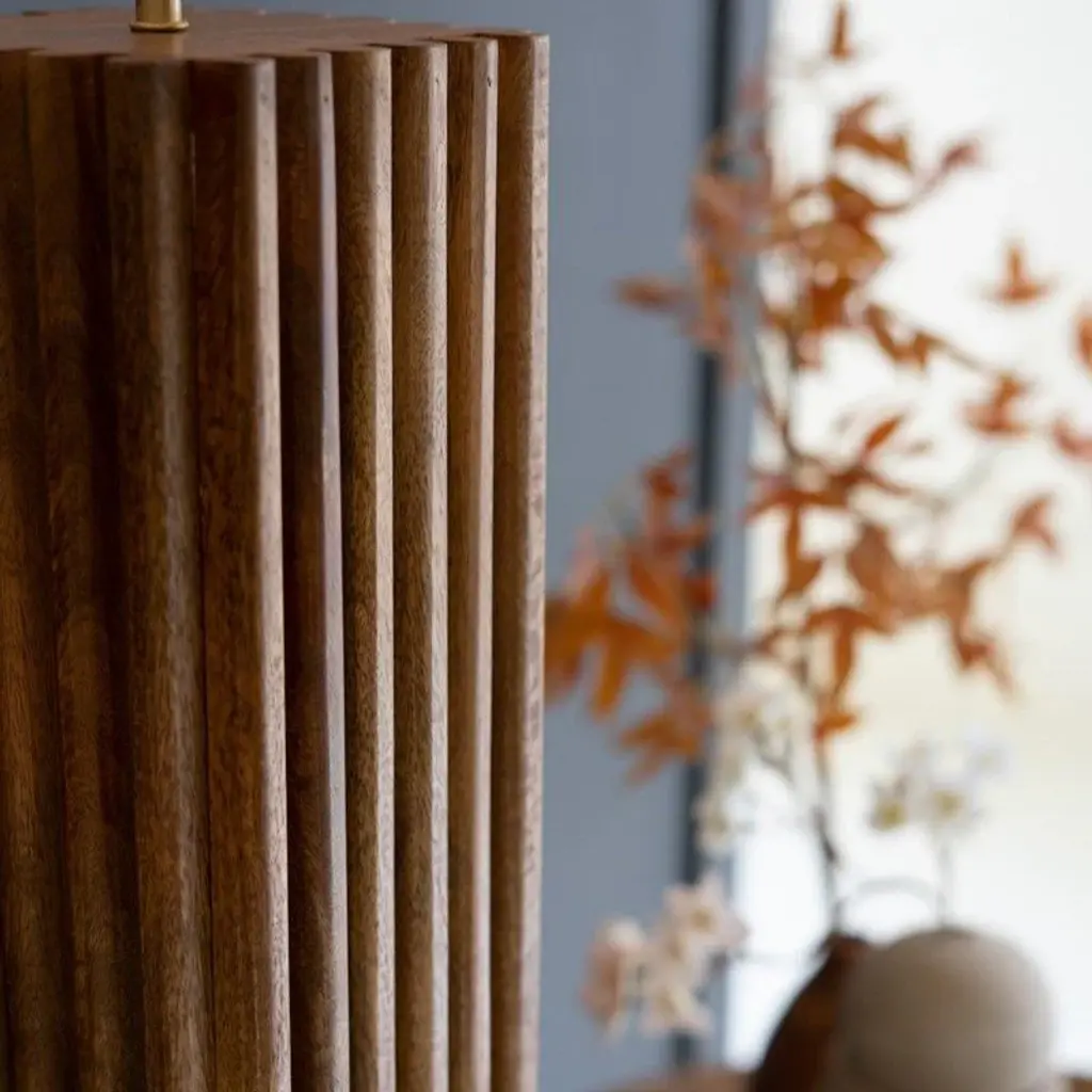Elegant Wood Spindles Floor Lamp Ribbed Striped 60.5 In Classic Minimalist Logs