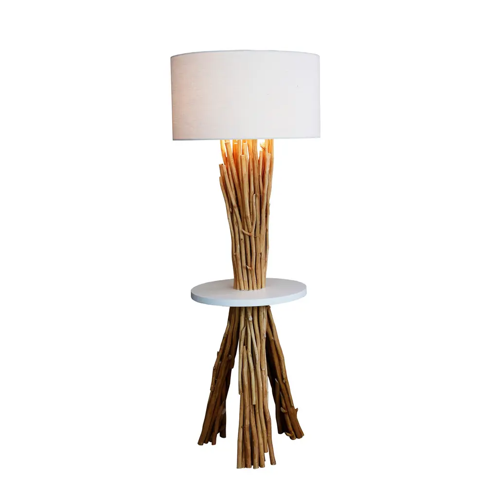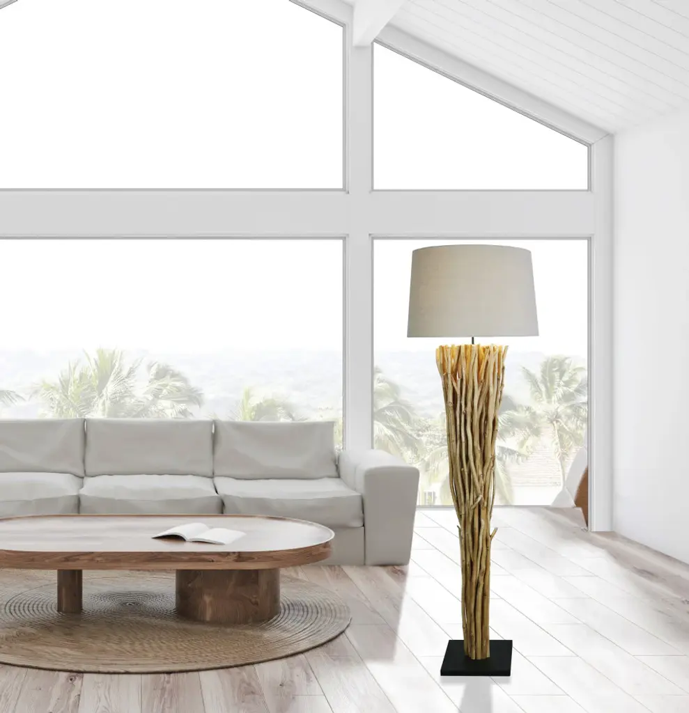 From the Pacific Island to your sanctuary Home, This Handcrafted Elementaire Floor lamp from Artiva USA is the best equipped lamp to brighten up any natural Vibe living space in your home , office or beach house. Unique design and it beautiful craftmanship will let you feels it presence in any setting and will transform any of your living space. Each "Elementaire" natural Wooden Floor Lamp are inspired by Thailand Tropical natureEach lamp are made from naturally shape wooden vines,roots and Branches. Each pieces of natural roots, wooden vines and branches are then treated by washing and sanding to reveal the remarkable texture and beauty underneathWith skill craftmanship,the pieces of wood then handcrafted by Artisan in such detail that creat your Elementaire lamp. Each Elementaire lamp has it own uniqueness and characterNo two piece will be identical.Perfect addition to any home or office. Artiva Exclusive. Perfect conversation piece.Handcrafted in Thailand. Smart outlet compatible.Handcrafted Natural Wood Floor Lamp Inspired by Tropical NatureUnique One of a kind lamp that no two lamp are identicalLamp: 22"x22"x69"H , Shade: Off-white Coarse Linen Shade (22"x22"x14"H)Uses 60-100W or LED Equivalent bulb. Bulb not includedHandcrafted in Thailand