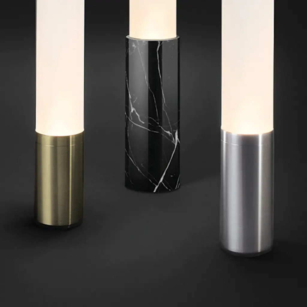 A towering beacon, Pablo's Elise Floor Lamp lights the way forward with a backward glance. Conceptually a tribute to the machine age, the lamp reveals its functionality with understated and honest intent. A machined-aluminum base conceals the light source and provides ample ballast, anchoring the towering frosted acrylic diffuser. A fully dimmable light source, in the Pablo tradition, the classic cylinder shape adapts to a variety of spaces. Offered in a range of sizes to be deployed individually or in multiples as necessary.