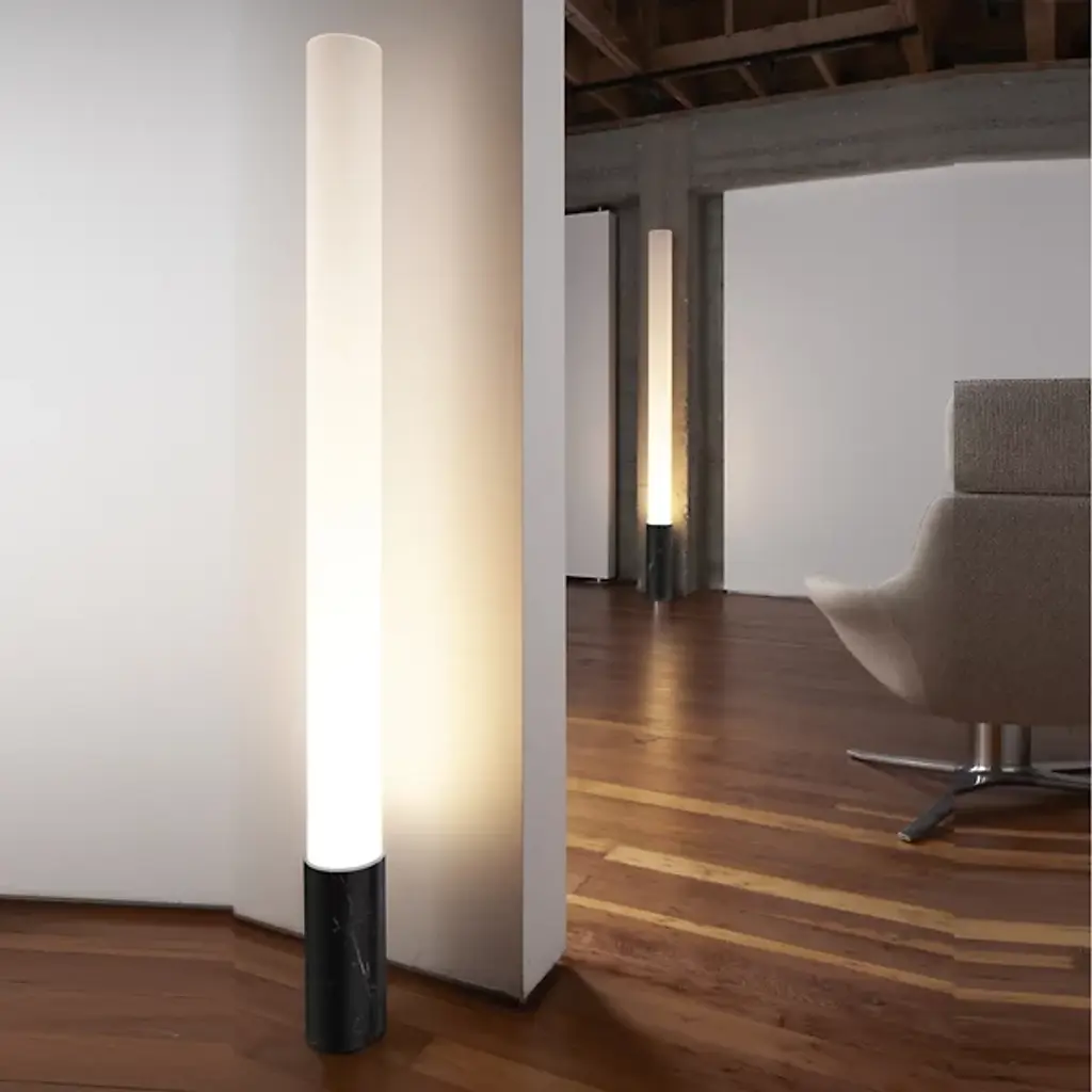 A conceptual tribute to the machine age. The Pablo Elise Floor Lamp is streamlined, understated, and honest in its function as a light source. Its towering frosted acrylic shade is a beacon of light, and its confident, geometric simplicity enables Elise to comfortably inhabit a range of spaces.