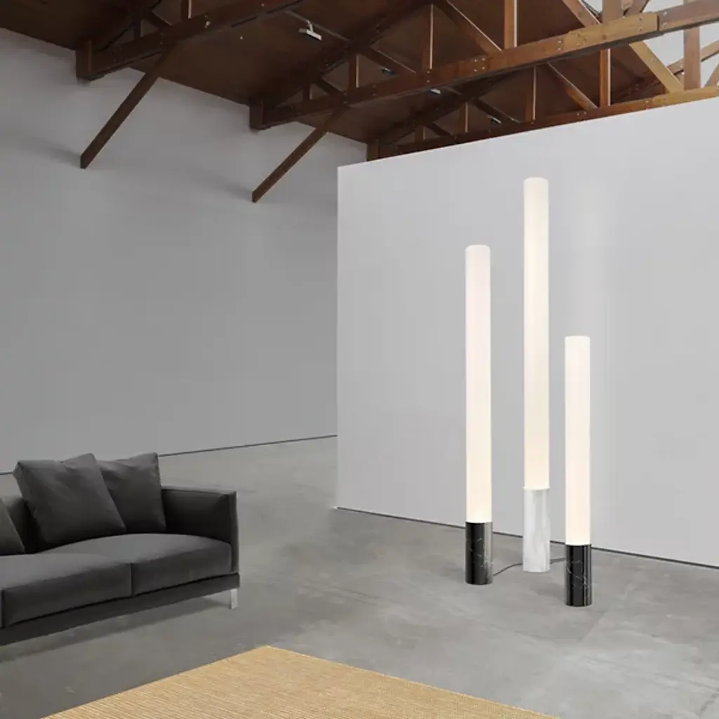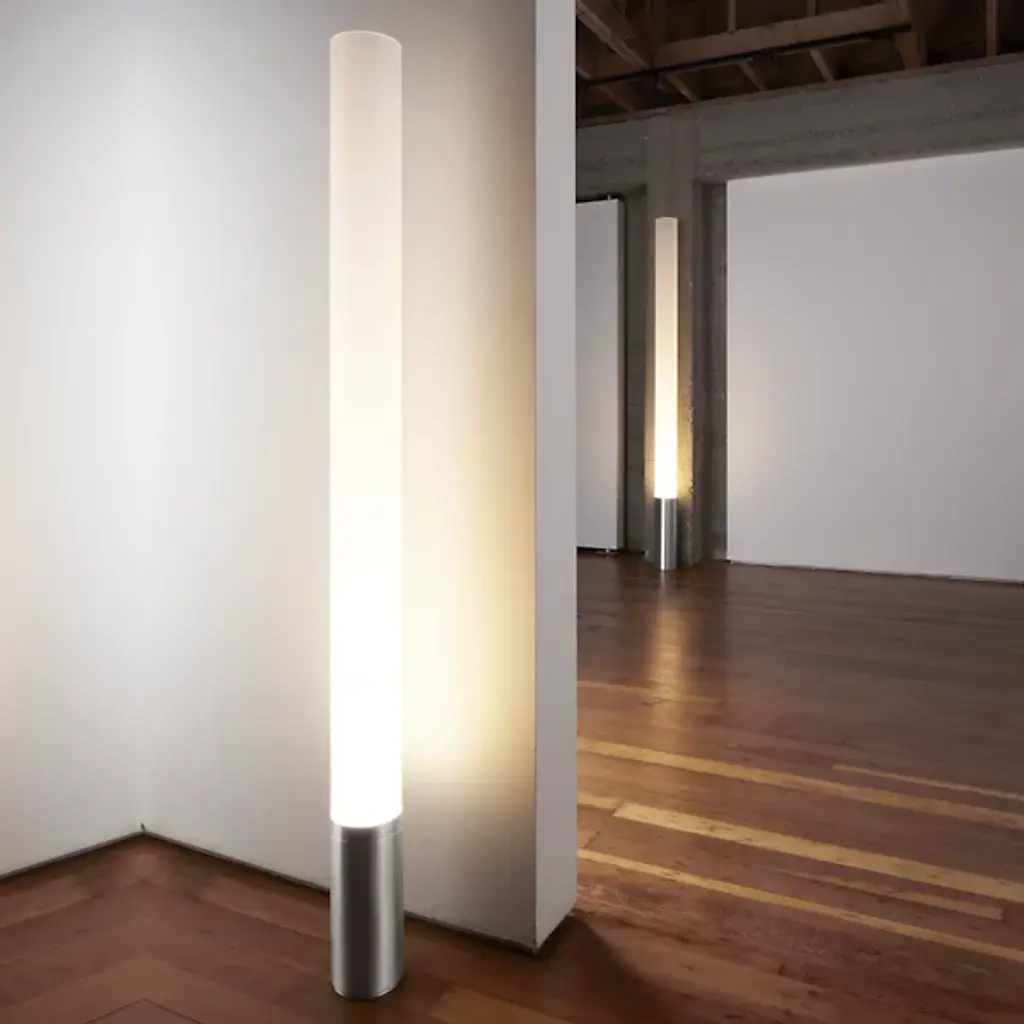 A conceptual tribute to the machine age. The Pablo Elise Floor Lamp is streamlined, understated, and honest in its function as a light source. Its towering frosted acrylic shade is a beacon of light, and its confident, geometric simplicity enables Elise to comfortably inhabit a range of spaces.