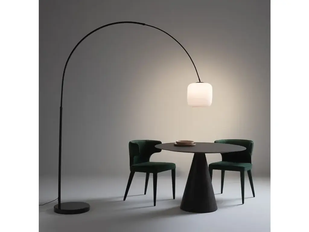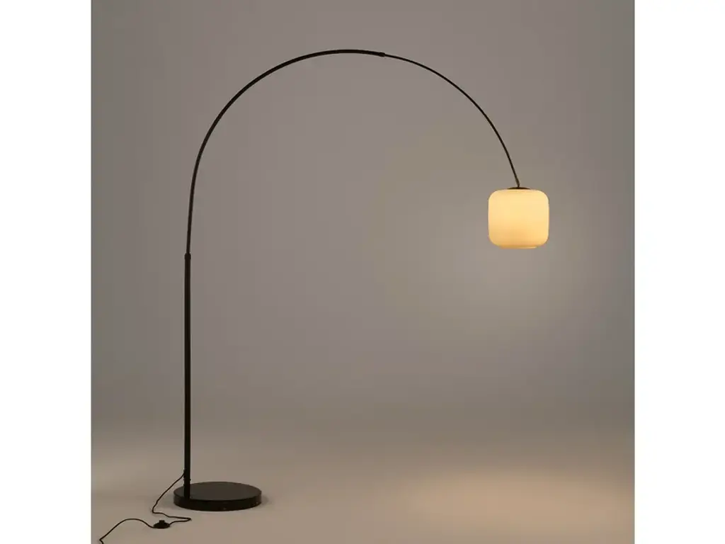 An arc shape, an amber marble base and a matte opaline globe. All curves, elegant and refined, the ELITA floor lamp, created by AMPM designers, provides offset lighting and diffuses a soft light. Its adjustable arc shape allows the light globe to overhang the dining table or living room, directing the light evenly.Product Details:Iron pole with matte black epoxy finishAmber marble base, each piece is uniqueMatte opaline glass globeE27 socket for 8W max bulb (not supplied)Textile sheathed electric cable