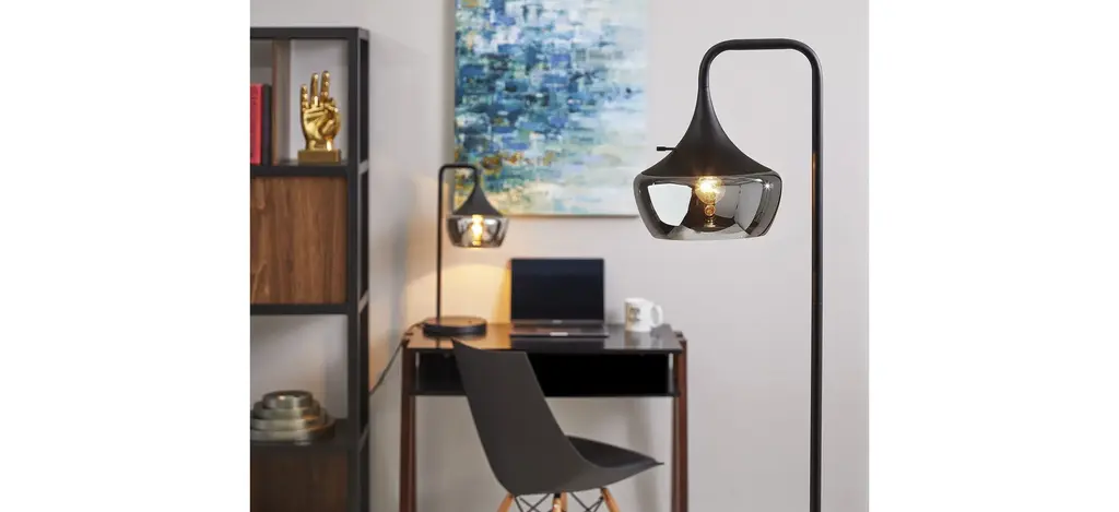 The Eliza Floor Lamp is sure to stand out in your home whether it is turned on or off. The options are endless with this edgy, contemporary style. Black metal is mixed with a smoked mercury glass shade. A convenient 3-way rotary switch is located on the shade cup. The 3-way rotary socket switch will only work with a 3-way light bulb, otherwise this lamp will function with simple on/off switch at its highest setting. All Adesso lighting product is either UL or ETL listed, meaning that it has been tested and approved to meet the government-regulated safety standards for the USA.
