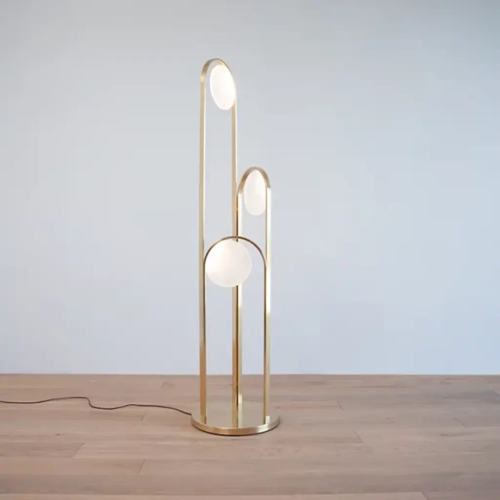 Bring a lunar vibe to your home décor with the Ellipse LED Floor Lamp by hollis+morris. Designer, Mischa Couvrette, is the creator of this astronomically inspired floor lamp. A fine framework of steel has been worked into a collection of beautiful arcs. A durable baseplate keeps these arcs properly balanced for the effortless displaying of frosted acrylic disks. An integrated LED brings bright light to the disk-shaped shades so that your environment stays illuminated.
