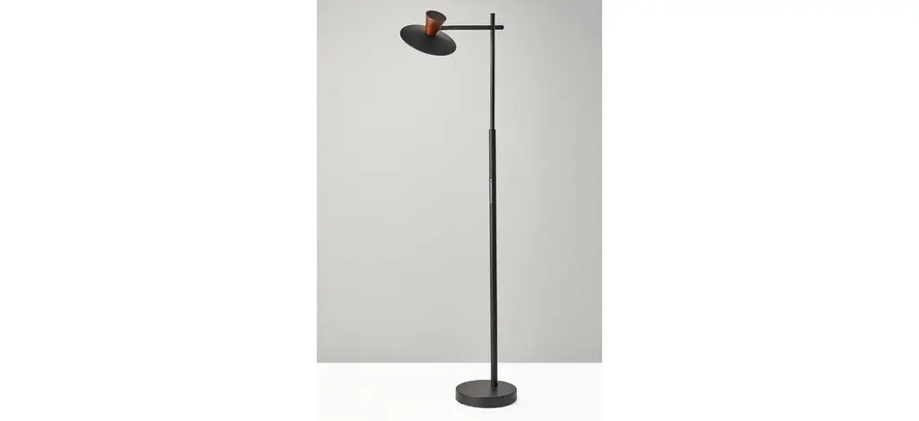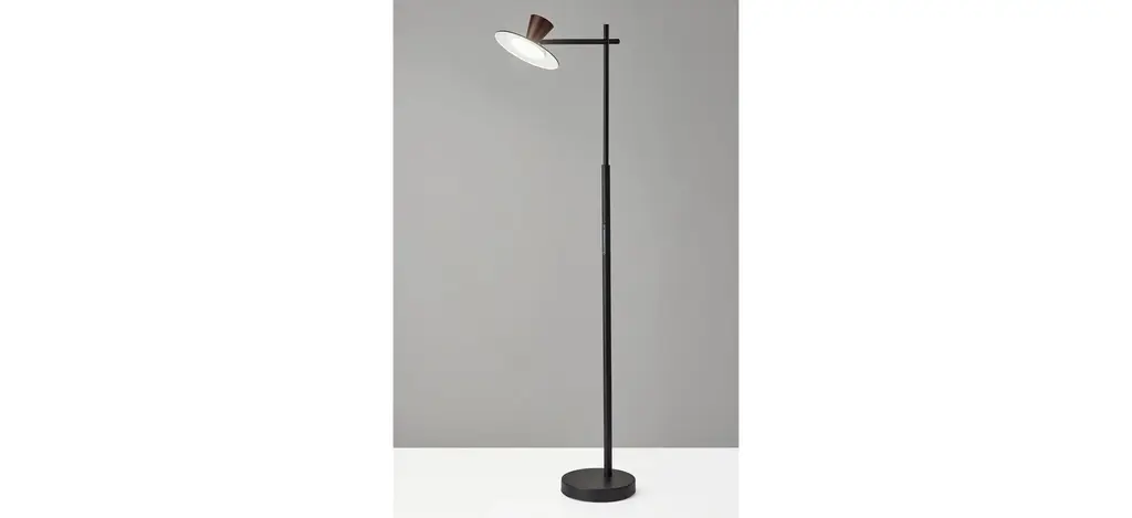 Elegant and modern, the 56" tall Elmore LED floor lamp adds contemporary, functional style to any space. The wood accent brings warmth to the metal construction, while the blend of geometric patterns creates visual interest. The 8" diameter shade can be adjusted and redirected to focus the light wherever it's needed and also features an integrated 8W LED light that is economical and eco-friendly. Operated by a smart switch built into the tall, slender stem, the Elmore floor lamp provides highly versatile lighting at the touch of a finger. For optimum adjustability, the smart switch controls a full-range dimmer and 5 color temperature settings to match the LED brightness and temperature to your activity and the time of day. Complete your space's decor with the Elmore floor lamp.