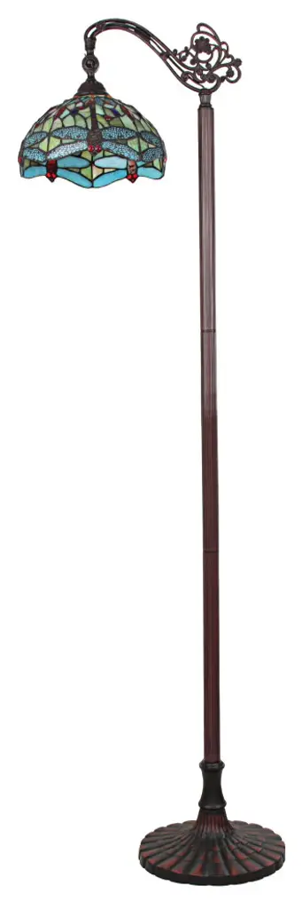 Empress is a beautiful dragonfly-style reading floor lamp, featuring stained glass that will cast a warm glow for your home. It is made up of 89 pieces of copper-foiled, stained art glass, 16 glass beads and 6 glass crystals, expertly designed and crafted by hand. Each of CHLOE''s Tiffany-style stained glass products are formed using the very same technique developed by Louis Comfort Tiffany in the early 1900''s, using hand cut stained art glass, each wrapped in fine copper foil and soldered together at extremely high temperatures to form each unique piece. Exact size to the nearest inch may vary, and exact color of each glass piece may vary due to each piece being hand crafted. First image is with the light shining through, second image is with no light. Dry listed and recommended for an indoor setting.