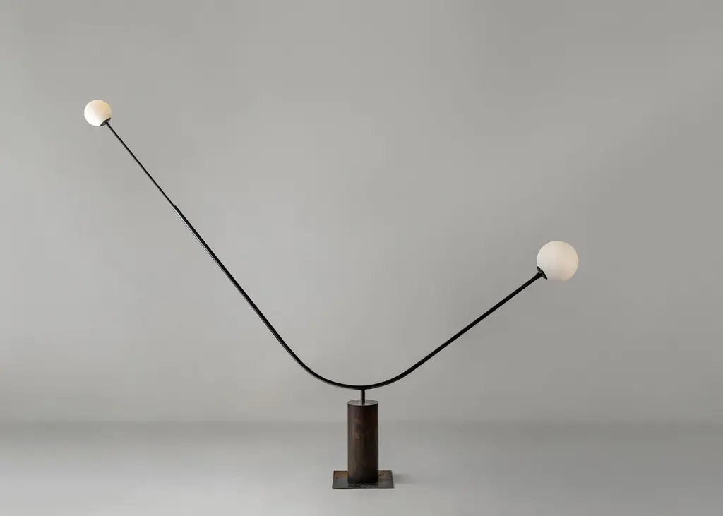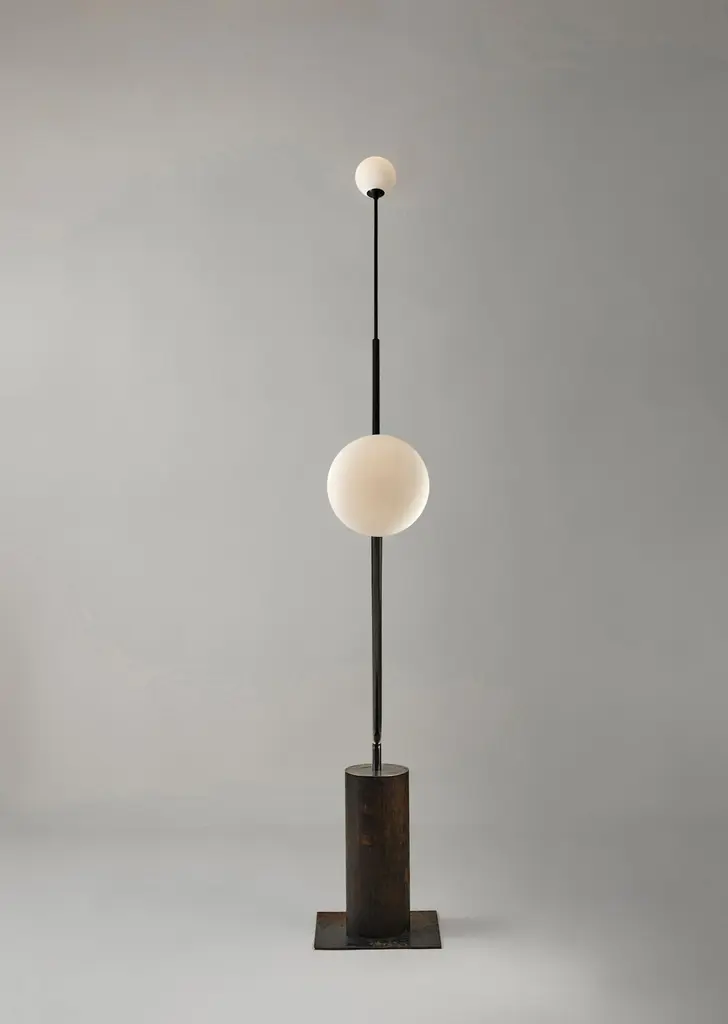 Envol floor lamp by Paul Matter.Measures: H 260 x W 280 cm.Materials: burnt brass, patineted iron, glass.Paul MatterPaul Matter is a contemporary light design studio that explores light design by blending the traditional with the experimental, form with function, and detail with the ordinary. The longevity of the designs is ensured by combining timeless visual language with materials that refine with age. The studio works closely with master craftsmen, developing handcrafted products, finished and assembled with great attention to detail, one piece at a time.Drawing from a rich palette, the materials used include aged brass, copper,stone, leather and blown glass.All our lamps can be wired according to each country. If sold to the USA it will be wired for the USA for instance.