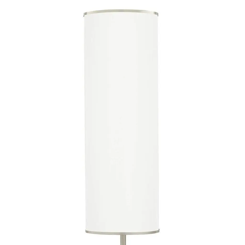 PRODUCT DETAILS: 62" high overall. Bottom base is 11" wide. Shade is 36" high x 12" wide. Weighs 15 lbs. Uses one maximum 150 watt standard-medium base bulb (not included). On-off rotary switch. Contemporary modern glass floor lamp from the Color + Plus lighting collection. Envy green designer finish. Round glass body. Brushed nickel finish accents. Metal construction. White linen cylinder shade with top and bottom metal trim. 8-foot long silver cord and plug. DESCRIPTION: Liven up your living space with this contemporary floor lamp from the Color + Plus™ collection. It comes in a brushed nickel finish metal frame, which supports a round glass body in a designer Envy green finish. A long white cylinder shade covers over half the design. The result is an eye-catching modern glass floor lamp with brilliant coloring.