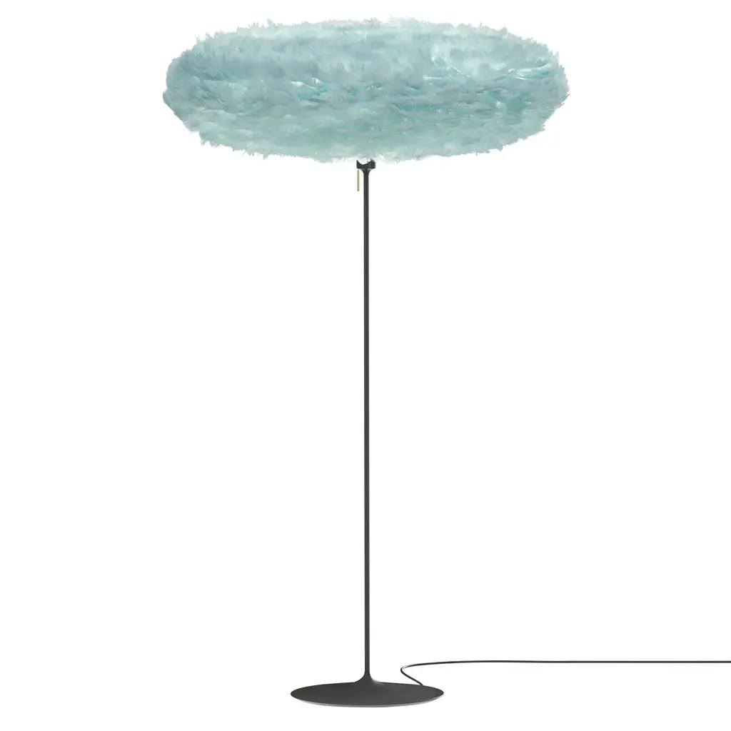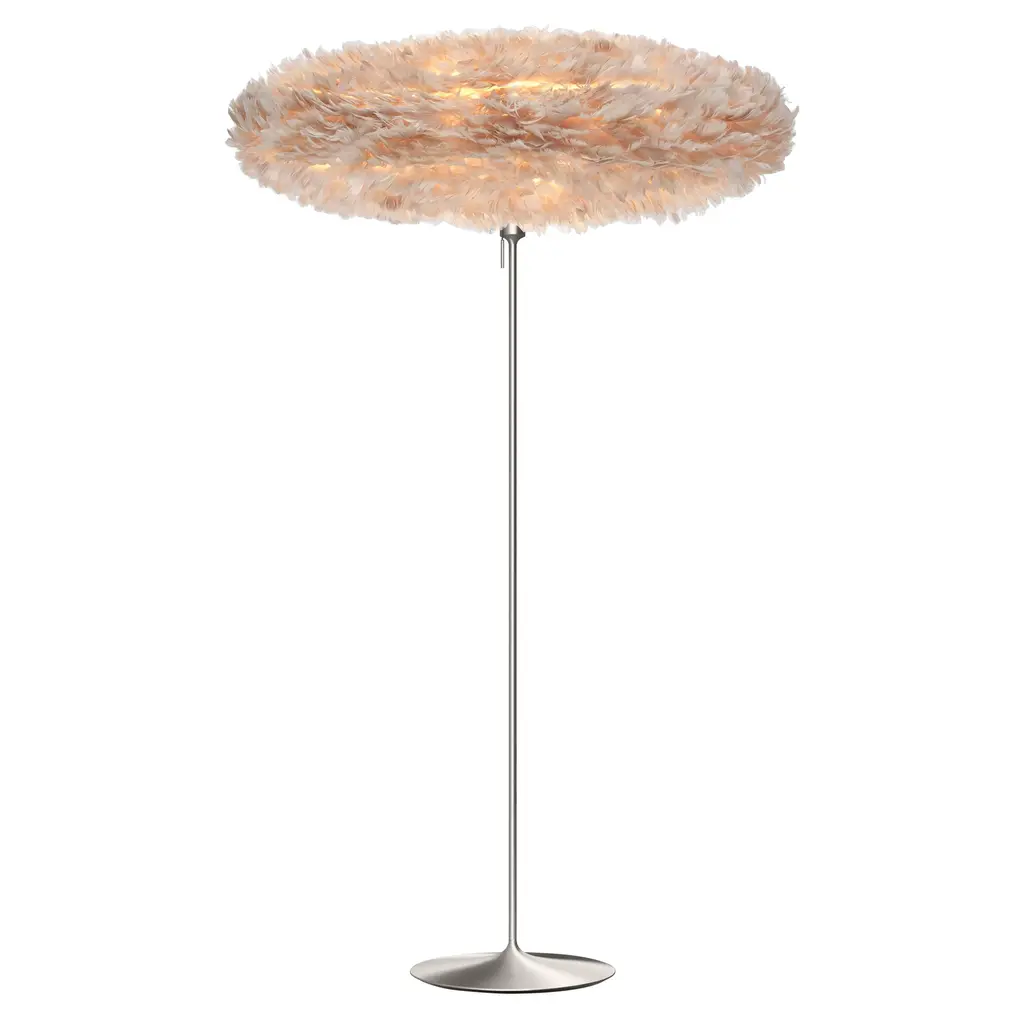 A glamorous stand inspired by a champagne flute pairs elegantly with Eos Esther's exuberantly feather-flocked oval shade. Designer Sřren Ravn Christensen's dramatic fluff serves to diffuse the LED illumination to a warm surrounding glow. In a choice of 5 Nordic-inspired hues and a pair of available sizes, the frothy light gets an extra kick from the freestanding floor stand with its slender curves rendered in brushed steel, brushed brass, black or white
