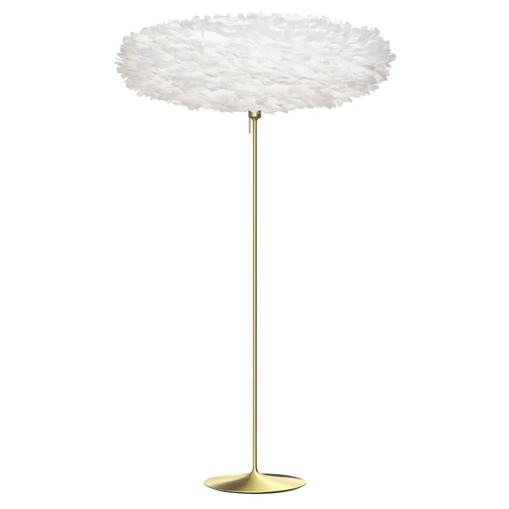 A glamorous stand inspired by a champagne flute pairs elegantly with Eos Esther's exuberantly feather-flocked oval shade. Designer Sřren Ravn Christensen's dramatic fluff serves to diffuse the LED illumination to a warm surrounding glow. In a choice of 5 Nordic-inspired hues and a pair of available sizes, the frothy light gets an extra kick from the freestanding floor stand with its slender curves rendered in brushed steel, brushed brass, black or white