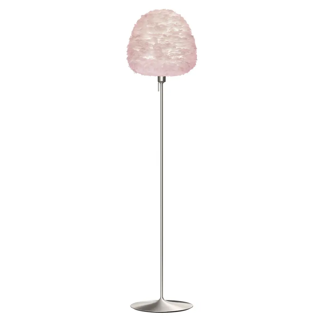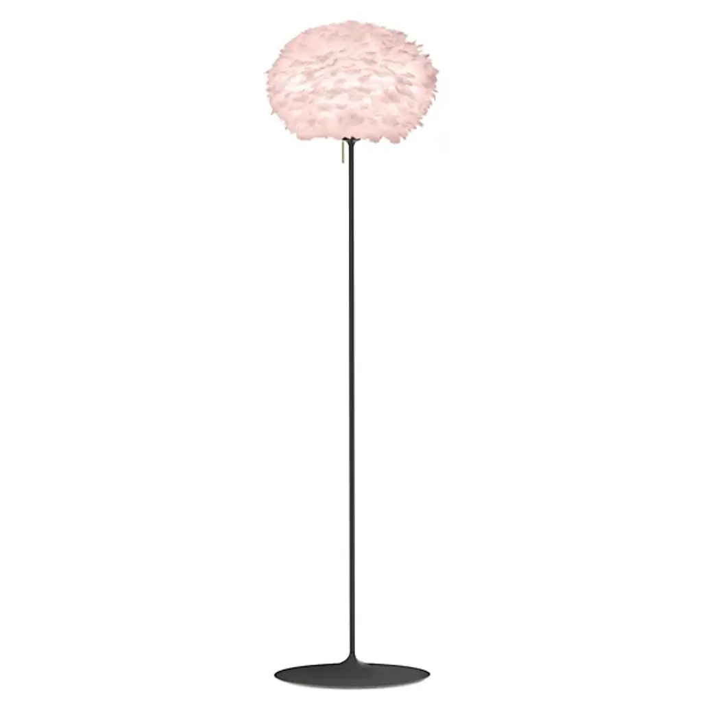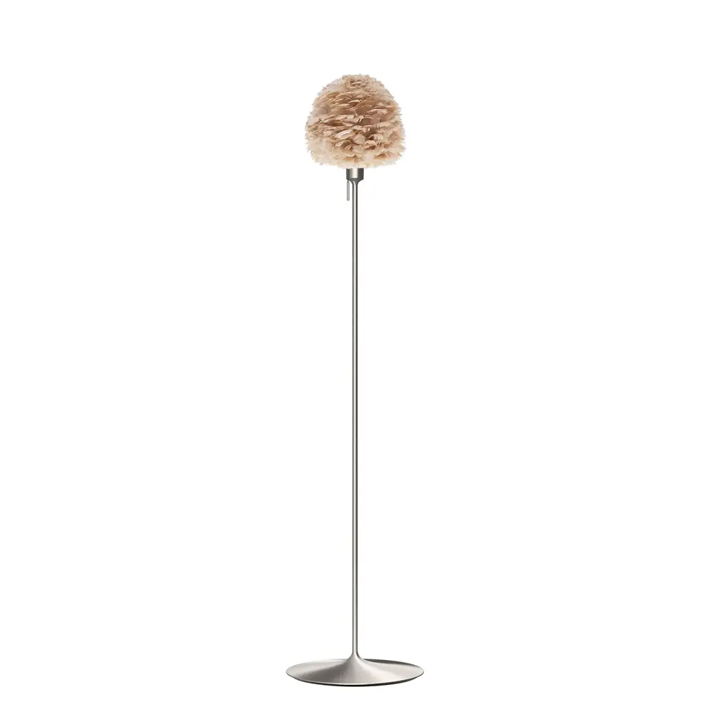 Evias fluffy goose feather shade resembling a beehive makes for a sleek floor lamp, topping a slender, almost invisible stem and a minimal round base. Providing diffuse and warm illumination, designer Soren Ravn Christensens light fits perfectly into any living room, bedroom or hallway. From Copenhagen-based Umages downy Eros series, named for the goddess of the dawn, its available in 2 sizes with the stand in either matte white or black. Sustainably shipped flat-packed, Evia is easily assembled and a wave of a hairdryer is all thats needed to clean the feathered shade.