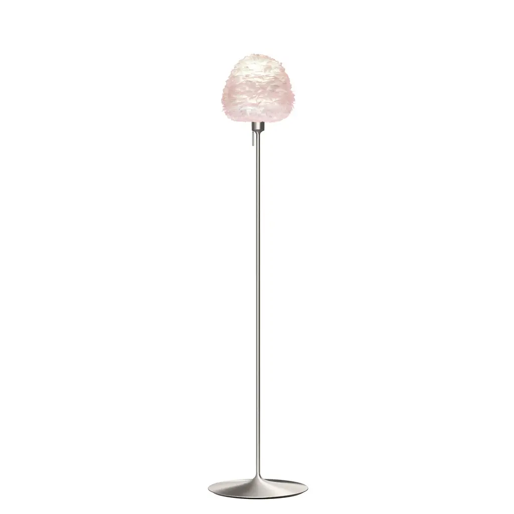 Evias fluffy goose feather shade resembling a beehive makes for a sleek floor lamp, topping a slender, almost invisible stem and a minimal round base. Providing diffuse and warm illumination, designer Soren Ravn Christensens light fits perfectly into any living room, bedroom or hallway. From Copenhagen-based Umages downy Eros series, named for the goddess of the dawn, its available in 2 sizes with the stand in either matte white or black. Sustainably shipped flat-packed, Evia is easily assembled and a wave of a hairdryer is all thats needed to clean the feathered shade.