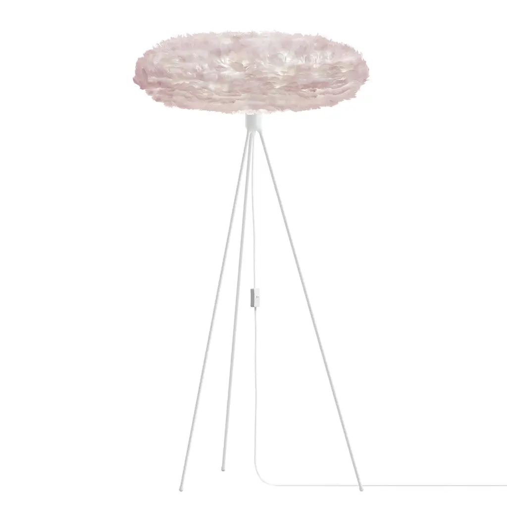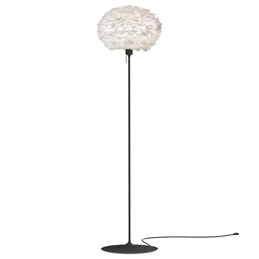 Evias fluffy goose feather shade resembling a beehive makes for a sleek floor lamp, topping a slender, almost invisible stem and a minimal round base. Providing diffuse and warm illumination, designer Soren Ravn Christensens light fits perfectly into any living room, bedroom or hallway. From Copenhagen-based Umages downy Eros series, named for the goddess of the dawn, its available in 2 sizes with the stand in either matte white or black. Sustainably shipped flat-packed, Evia is easily assembled and a wave of a hairdryer is all thats needed to clean the feathered shade.