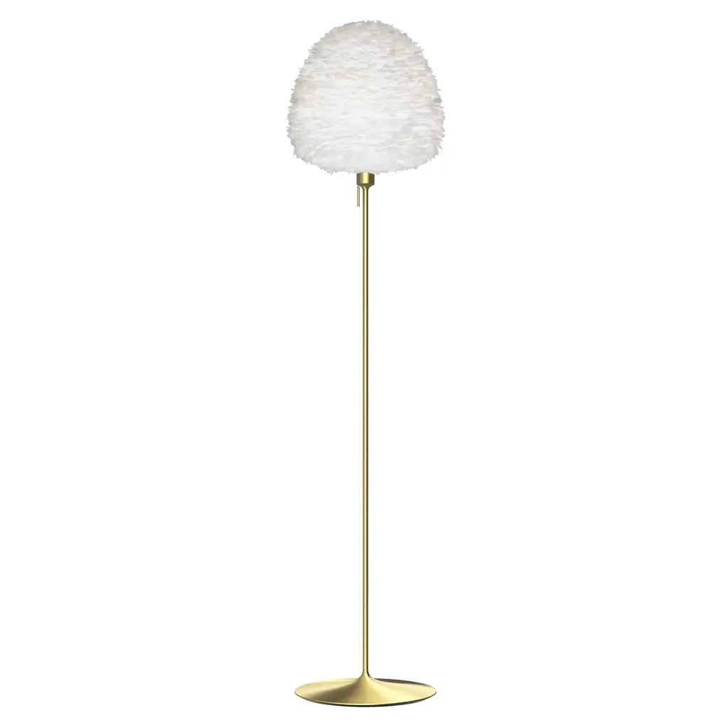 Evias fluffy goose feather shade resembling a beehive makes for a sleek floor lamp, topping a slender, almost invisible stem and a minimal round base. Providing diffuse and warm illumination, designer Soren Ravn Christensens light fits perfectly into any living room, bedroom or hallway. From Copenhagen-based Umages downy Eros series, named for the goddess of the dawn, its available in 2 sizes with the stand in either matte white or black. Sustainably shipped flat-packed, Evia is easily assembled and a wave of a hairdryer is all thats needed to clean the feathered shade.