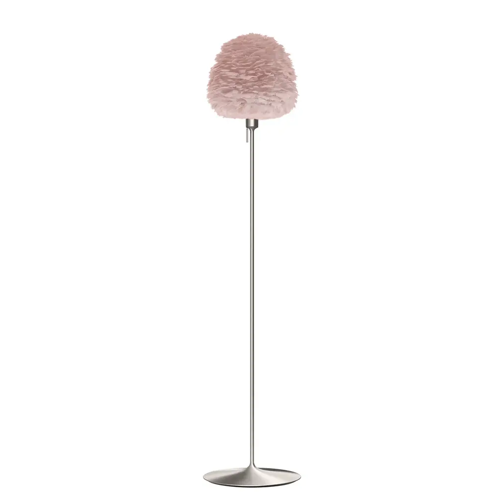 Evias fluffy goose feather shade resembling a beehive makes for a sleek floor lamp, topping a slender, almost invisible stem and a minimal round base. Providing diffuse and warm illumination, designer Soren Ravn Christensens light fits perfectly into any living room, bedroom or hallway. From Copenhagen-based Umages downy Eros series, named for the goddess of the dawn, its available in 2 sizes with the stand in either matte white or black. Sustainably shipped flat-packed, Evia is easily assembled and a wave of a hairdryer is all thats needed to clean the feathered shade.