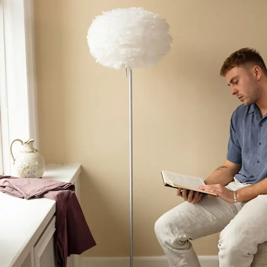 Like a cloud floating through your living space. The Eos Floor Lamp by UMAGE is a testament to the ingenuity of modern design. Its shade is made from both paper and recycled goose feathers, both of which act to diffuse and warm the light found underneath. This is combined with a sleek, almost invisible, stem and a basic round base.