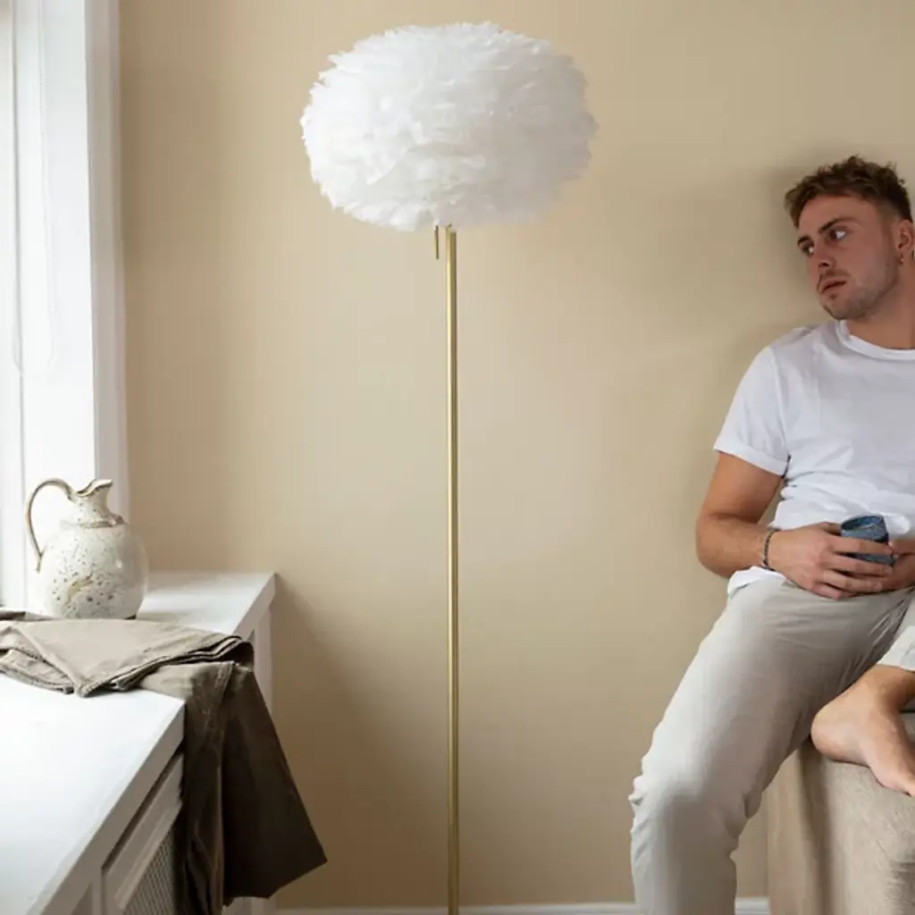 Like a cloud floating through your living space. The Eos Floor Lamp by UMAGE is a testament to the ingenuity of modern design. Its shade is made from both paper and recycled goose feathers, both of which act to diffuse and warm the light found underneath. This is combined with a sleek, almost invisible, stem and a basic round base.