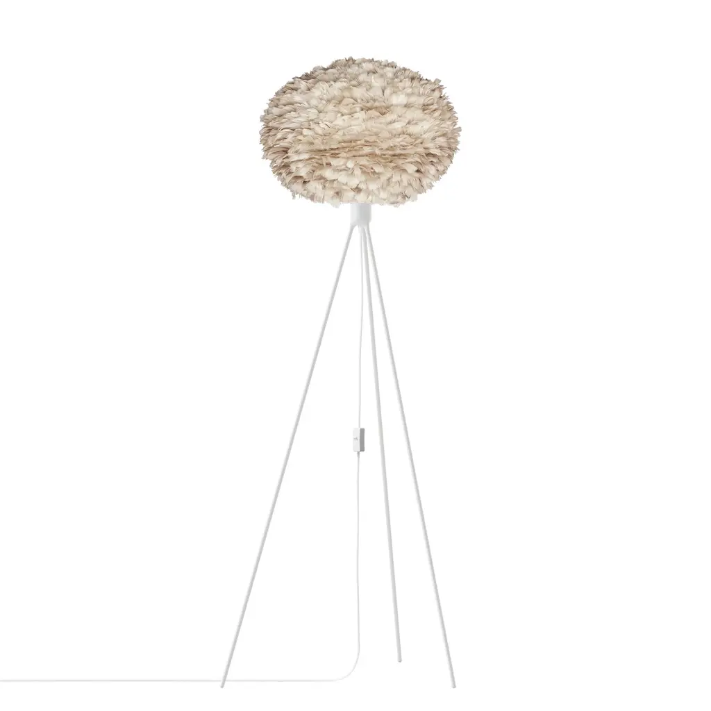 An elegantly elongated tripod base anchors a fluffy feathered light, making for a distinctively dramatic floor lamp. Named for the goddess of the dawn from Greek mythology, Eos is made from recycled goose feathers in a choice of 3 different hues—white, light brown or light grey—for a naturalistic Nordic appeal. Designer Soren Ravn Christensen’s creates a welcoming vibe with its diffuse and warm illumination as well as a subtle panache to any room.