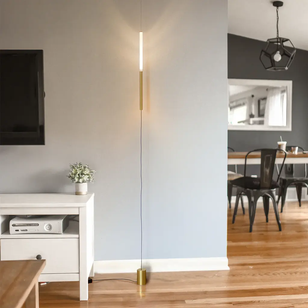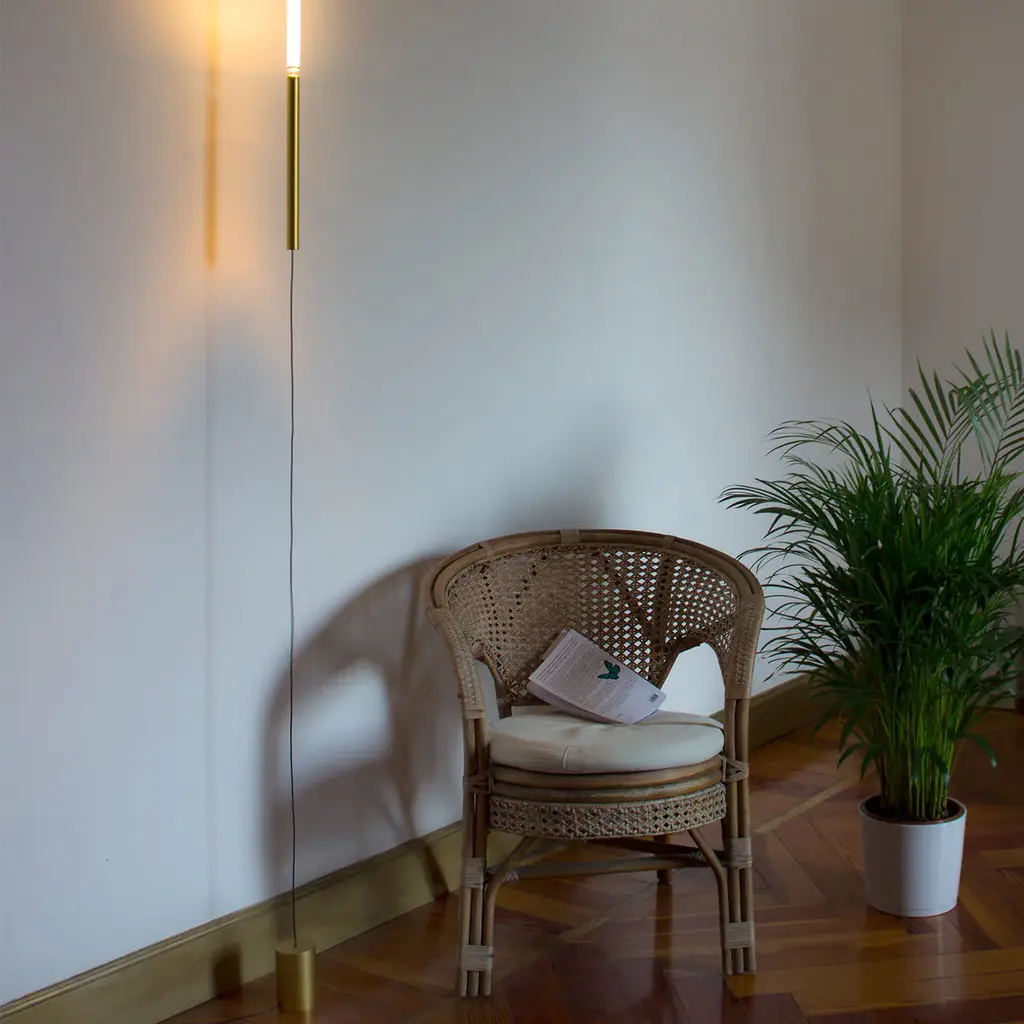 Versatile and bold, this floor lamp with blend seamlessly with any minimalist decor thanks to its simple and unmistakable silhouette. This lamp has no structure without the presence of magnetic forces: two symmetrical tubes with ringed magnets on either end allow them to defy gravity and create a force strong enough to suspend in mid-air. This weightless design is fashioned of iron with a bronzed finish that diffuses a warm light in a living room, bedroom, or entryway decor. Recommended height: 165 cm from the floor, and 350 cm from the ceiling. To install the lamp, it is necessary to mount a fischer plug on the ceiling (no wiring is needed from the ceiling). The standard product can be installed in rooms having a maximum height of 3 m. The lenght of the cable is customizable.