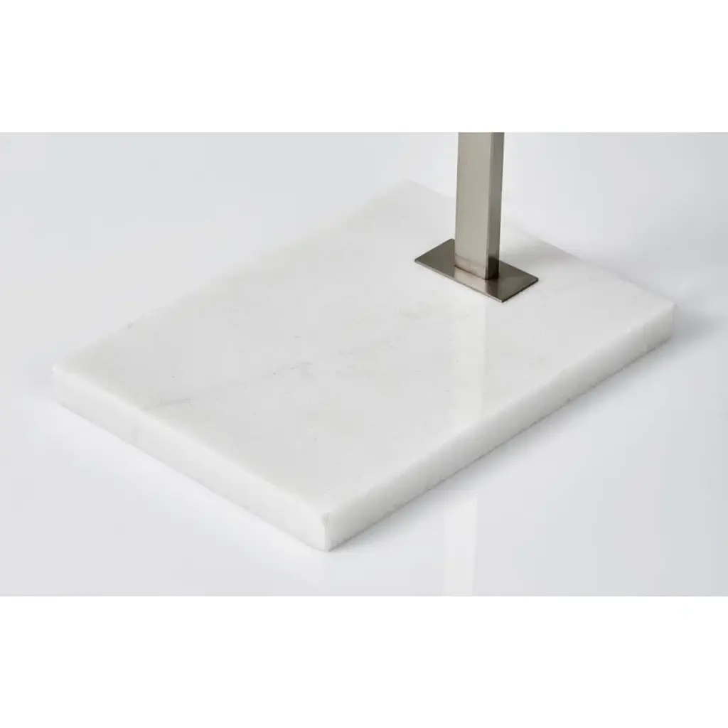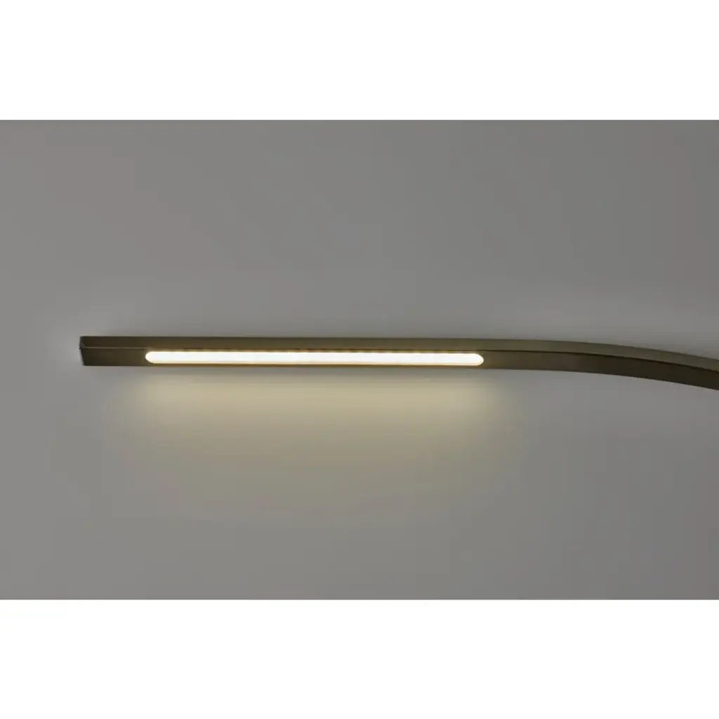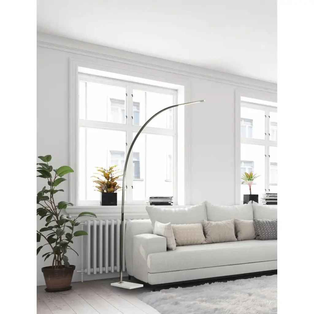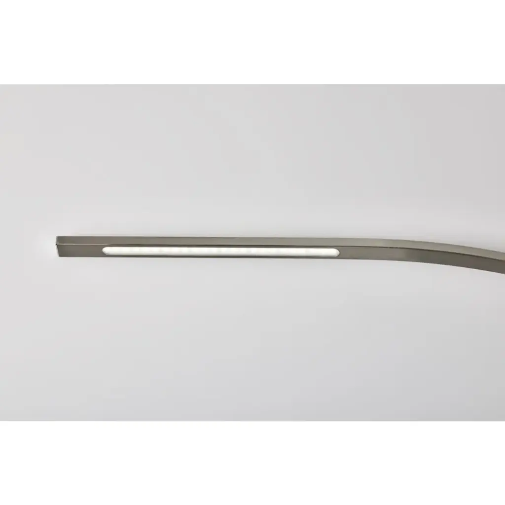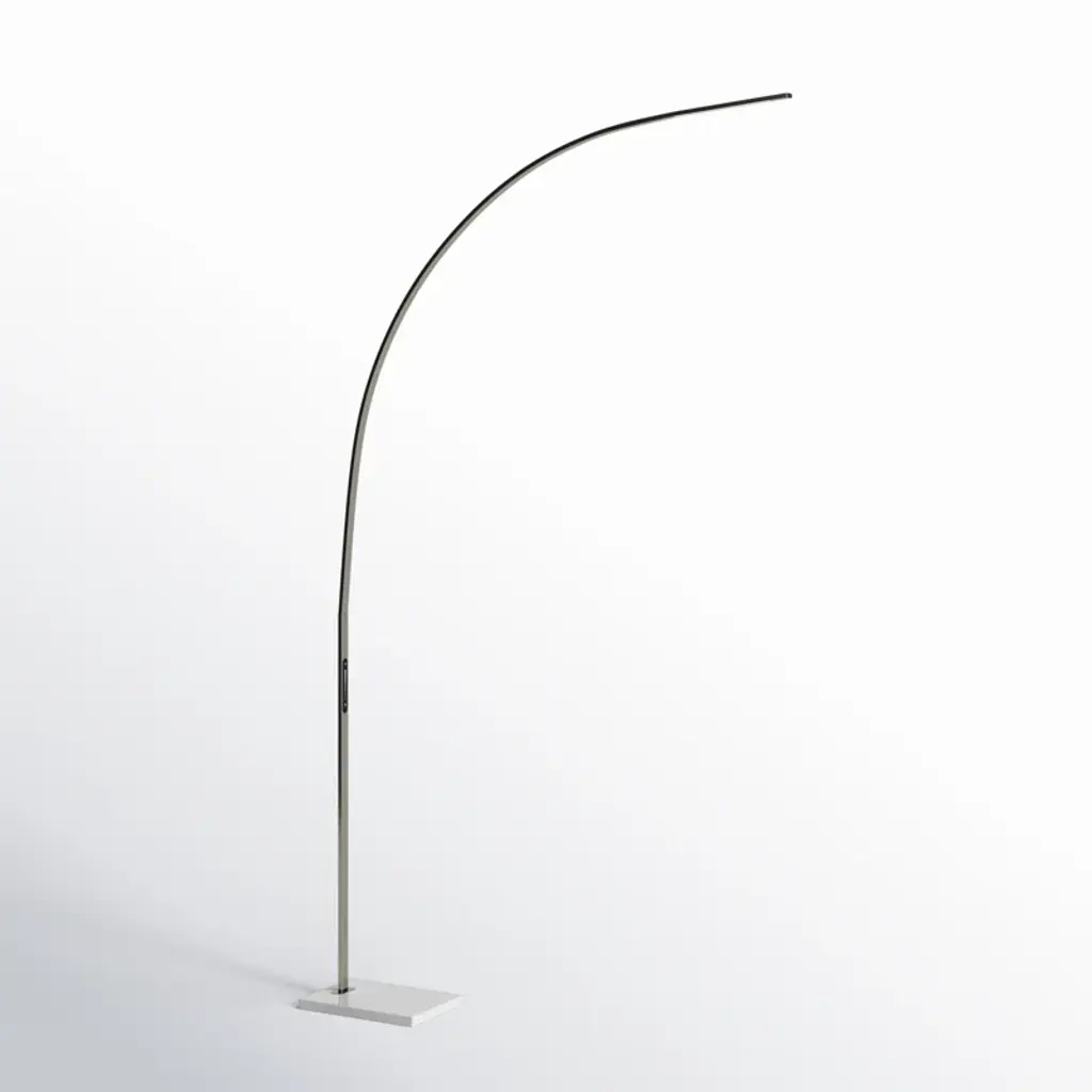 The Esmerelda floor lamp's dramatic arc illuminates any room with 2,000 lumens of energy-efficient 24W LED lighting. Rated to last 50,000 hours, the LED lighting is integrated into the lamp. The slender rectangular tube extends more than 7' and offers a smart switch with a full-range dimmer and five settings to find the perfect color temperature for your mood, from crisp to warm, at the touch of a finger. Anchoring the lamp is a rectangular base that adds a hint of elegance. This lamp is powered by a black cord.