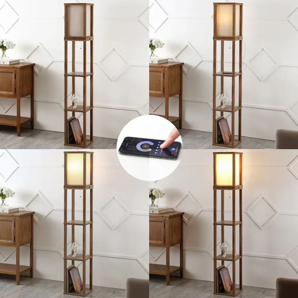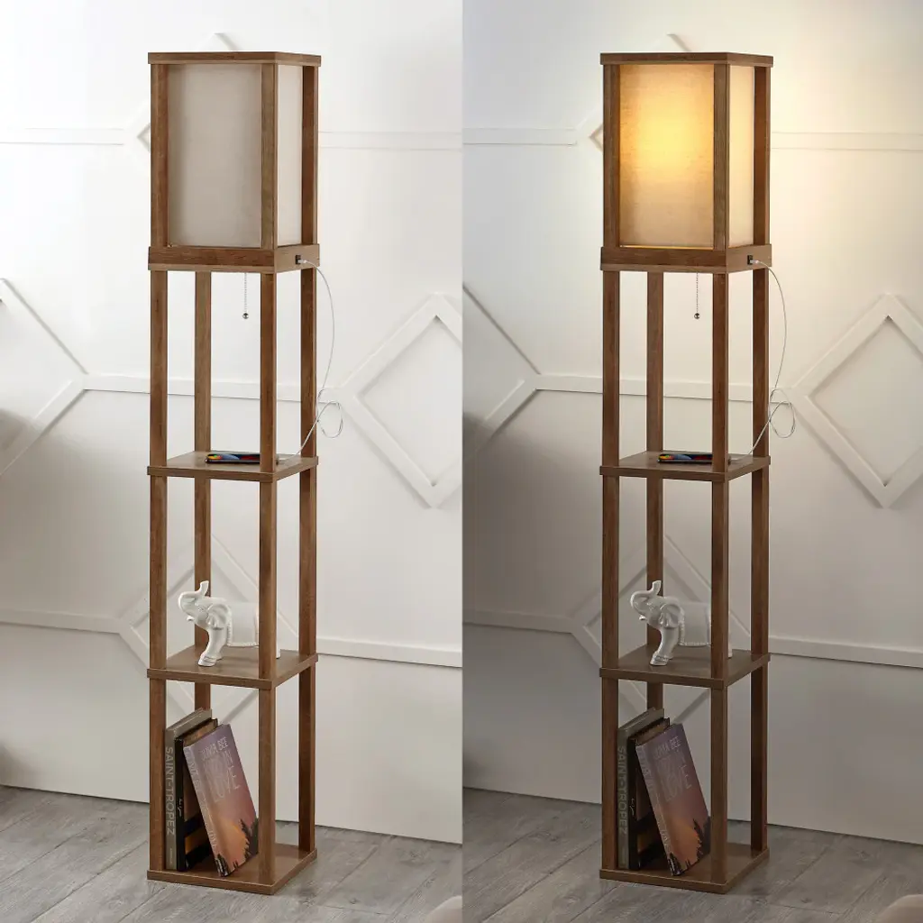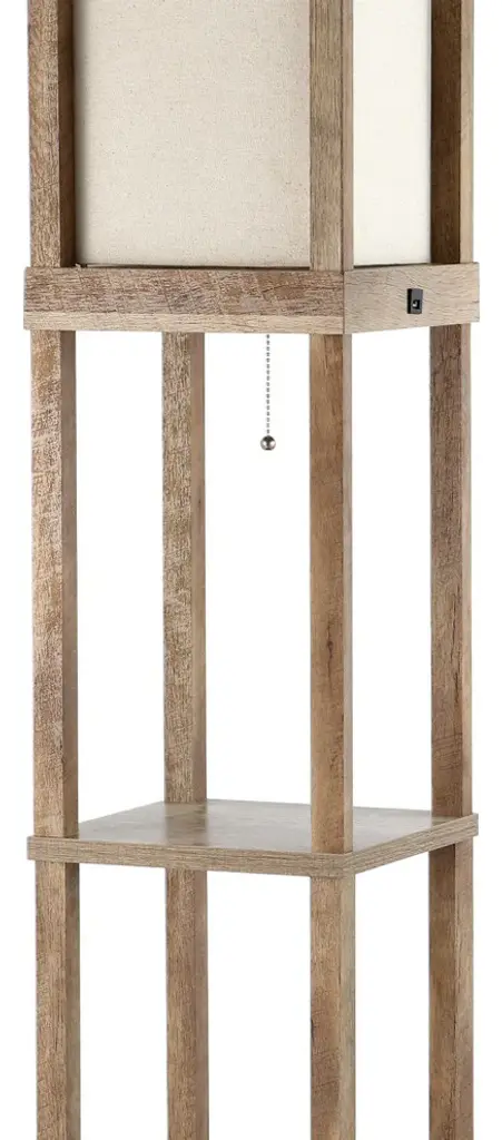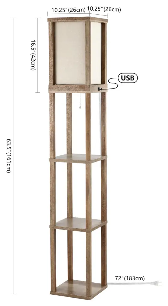 Add storage and lighting to a bedroom, living room or office with our modern three-shelf floor lamp. This square-shade lamp has handy shelves for books and plants. Charge your mobile devices using the built-in USB port. A hardback fabric shade provides soft lighting; set the mood using the JONATHAN Y mobile app to dim the LED smart bulb and choose from thousands of colors.Features:• Along with a medium wood tone, this floor lamp has a beige fabric shade to filter the light• Along with a USB charging port for mobile devices, you can also control the multicolor dimmable smart bulb using the JONATHAN Y mobile app, and choose from over 50,000 unique colors• This bohemian shelf lamp is a quality touch to any room with its silk-wrapped cord and classic pull-chain switch• Eco-friendly 5W LED bulb included• Takes 1 bulb and compatible with TYPE "A" 60W or CFL 13W or LED 9W• Color: Brown with Beige Shade• Body Material: Medium Density Fiberboard• Includes: One (1) lamp• Assembly RequiredDimensions:• Lamp: 63.5 inches high x 10.25 inches wide x 10.25 inches deepAbout us:You see a lamp.We see a decorative work of art.A perfectly curved shade casts a dramatic shadow on a floor. Compatible with LED lightbulbs: as easy on the environment as they are on the eyes. The JONATHAN Y Lighting collection considers every detail from impeccably sourced materials to designer styling. And our prices are so attractive, we''ve transformed a functional necessity into a fashion accessory.JONATHAN Y Lighting - a fashion revolution in home decor.