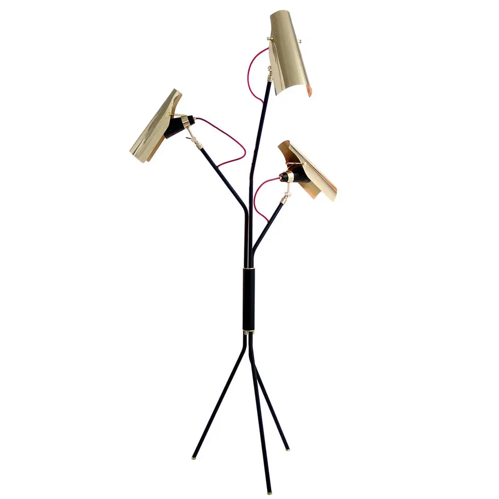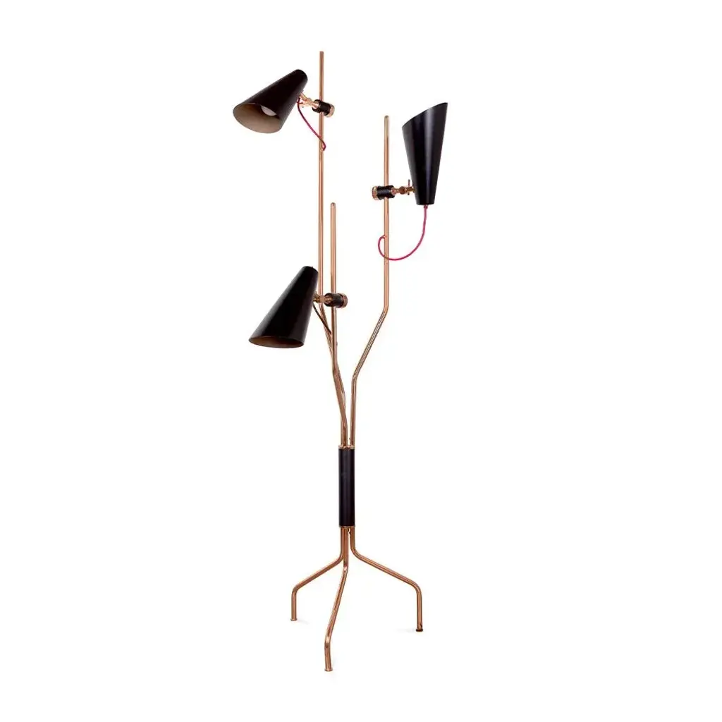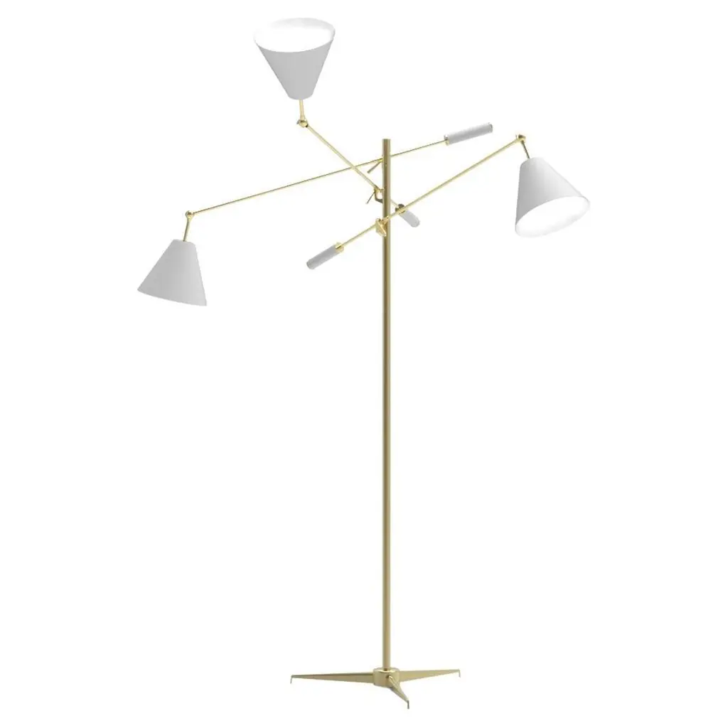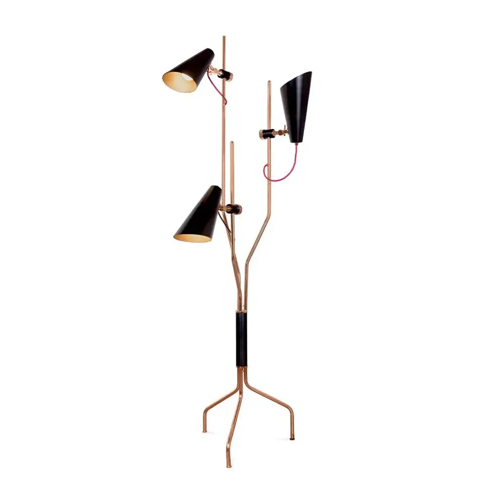With a mid-century modern vibe, this Evans floor lamp has three diffusers. Each shade is moveable and adjusts making this a very functional light source that can be changed depending on where it is placed. This tripod floor lamp features an avant-garde design that will provide a light-filled optimism to your mid-century modern interior design. European Plug (up to 250V).