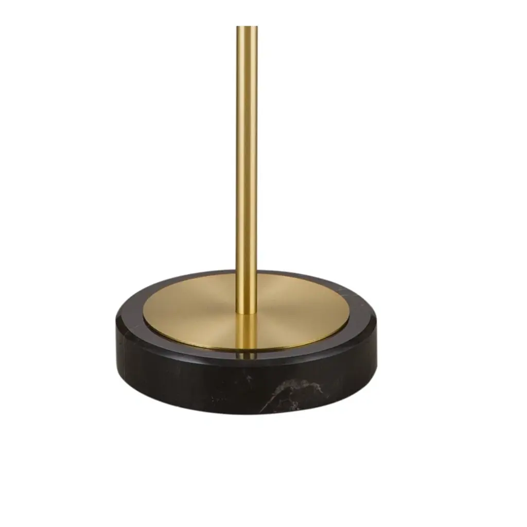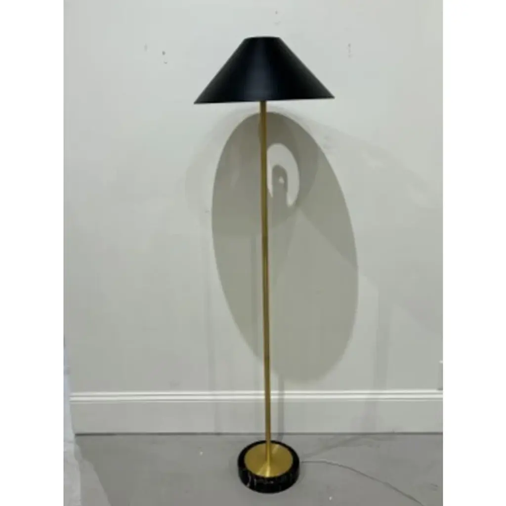 The Floor Lamp, boasting a high-contrast black marble base paired with a gold brass body, embodies contemporary glam style. Its cone-shaped lamp shade, crafted with black metal, adds a touch of sophistication. The lamp features a convenient on/off cord switch, and with a 78-inch cord, easy placement is assured.