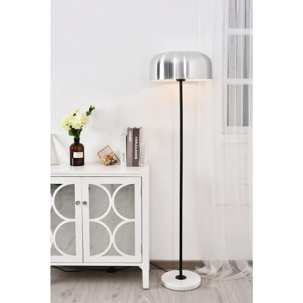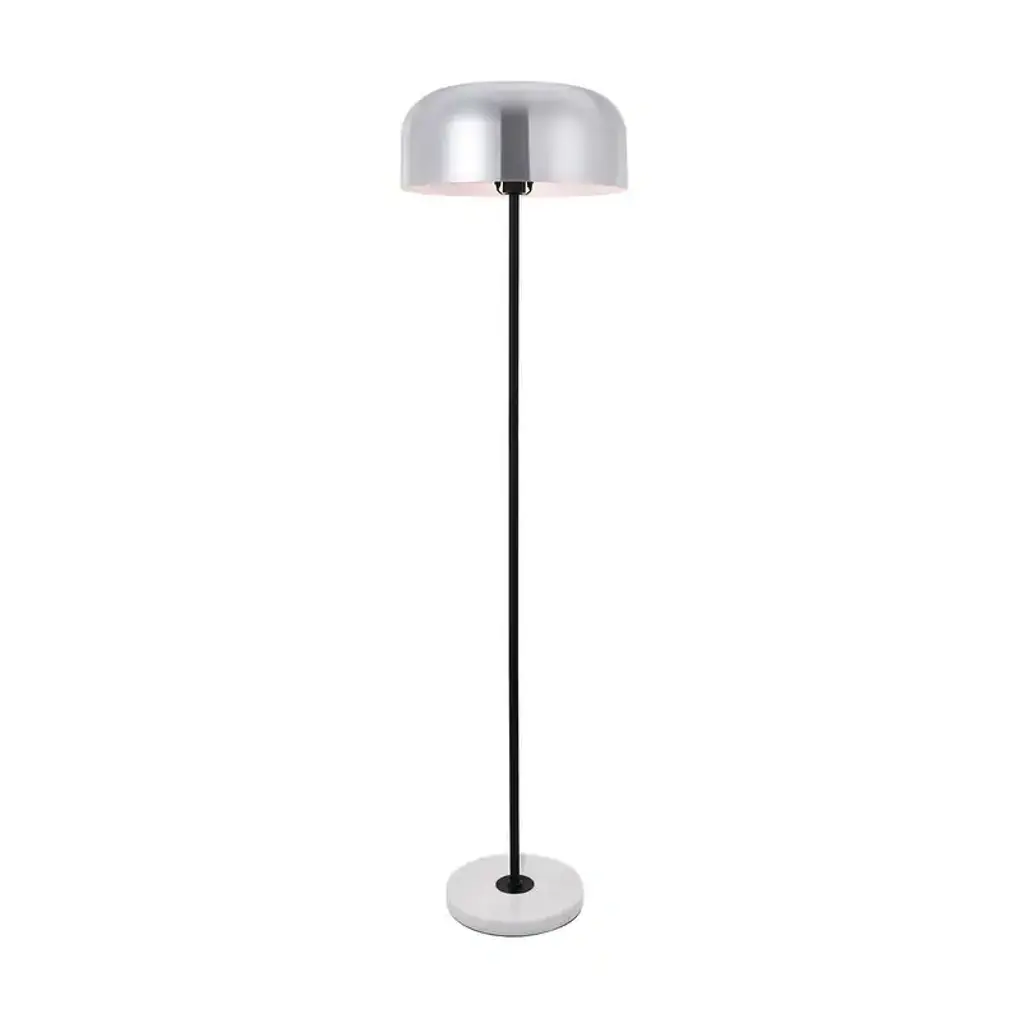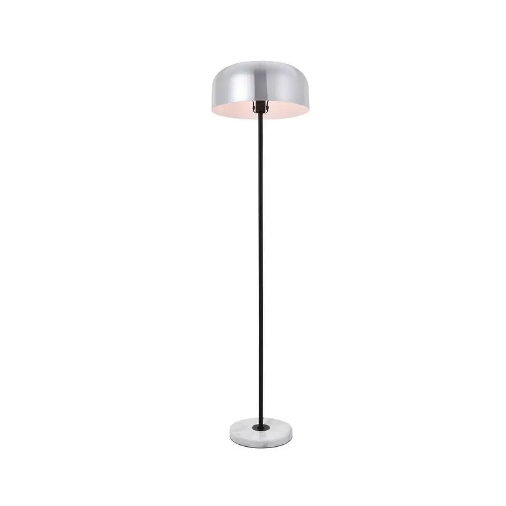 Experience the epitome of modern beauty with the Exemplar collection floor lamp in a black exterior and a white interior finish. From the marble base, to the slender rod to the capsule like shade, it's a modest kind of luxury, but a luxury all the same. Enjoy this lamp's brightness in the living room, office, or bedroom. • Contemporary brushed nickel finish floor lamp with a dome shape shade, slender body, and white Carrera marble base • Requires 1 E26 bulbs (bulbs not included) • Dome shaped brushed nickel aluminum shade with white finish interior • White carrera marble base • Shade width: 16.5"; Shade height: 7.2" • Height: 63" • assembly required: yes