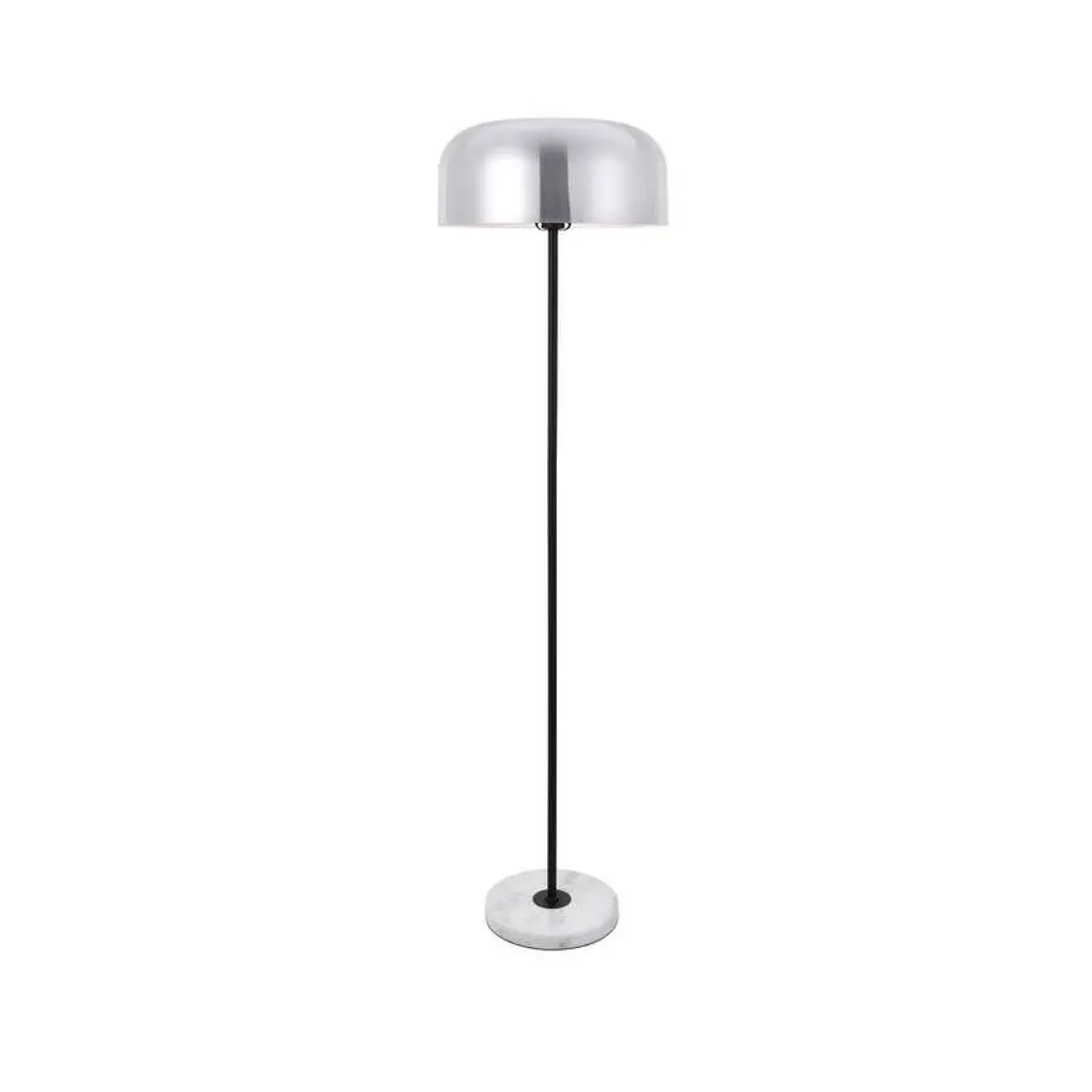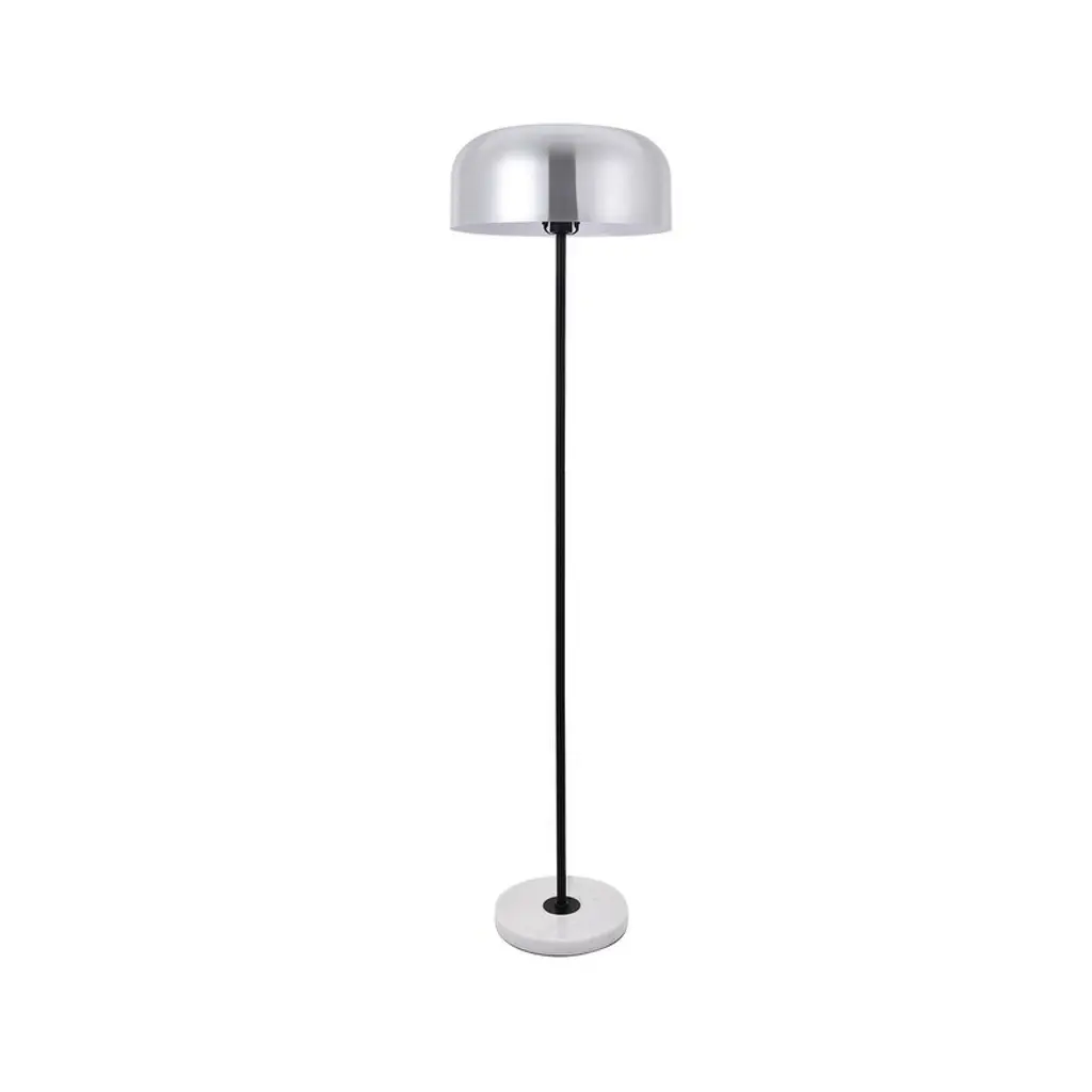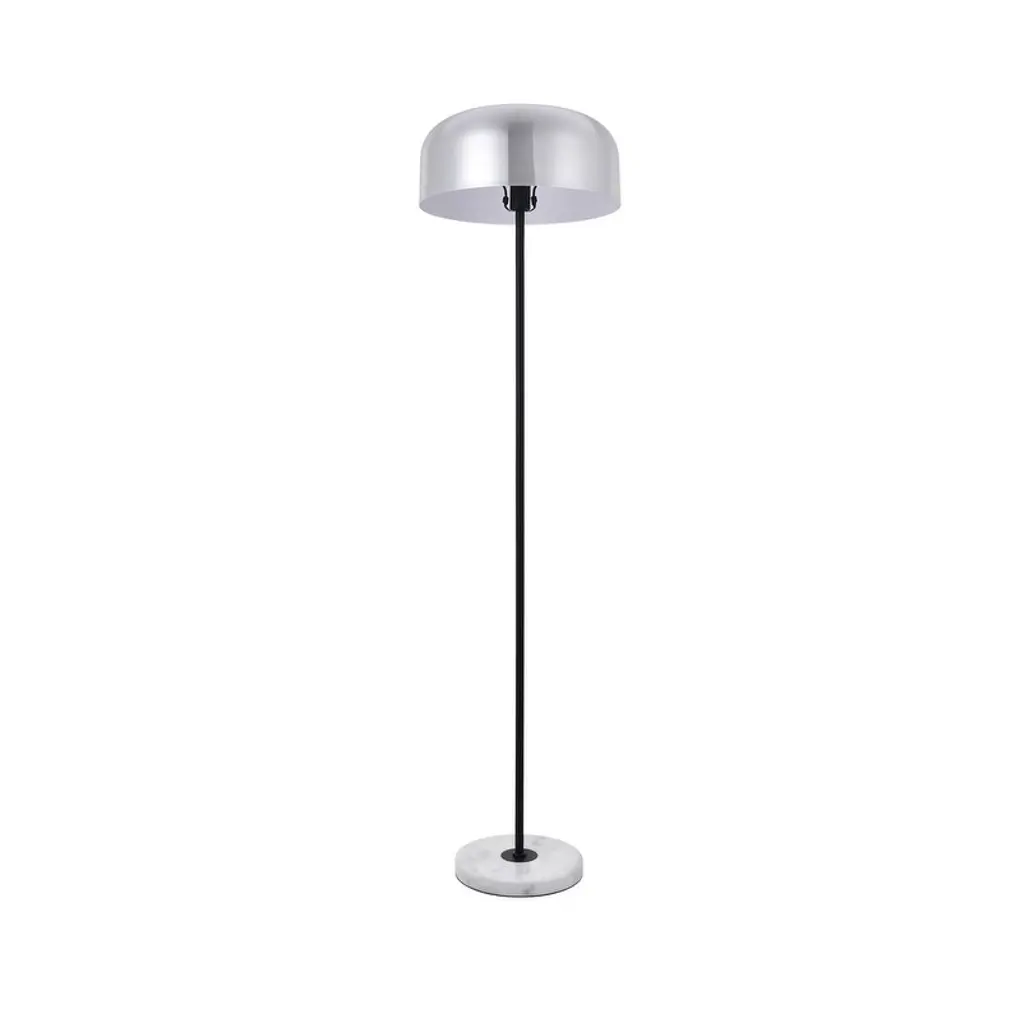 Experience the epitome of modern beauty with the Exemplar collection floor lamp in a black exterior and a white interior finish. From the marble base, to the slender rod to the capsule like shade, it's a modest kind of luxury, but a luxury all the same. Enjoy this lamp's brightness in the living room, office, or bedroom. • Contemporary brushed nickel finish floor lamp with a dome shape shade, slender body, and white Carrera marble base • Requires 1 E26 bulbs (bulbs not included) • Dome shaped brushed nickel aluminum shade with white finish interior • White carrera marble base • Shade width: 16.5"; Shade height: 7.2" • Height: 63" • assembly required: yes