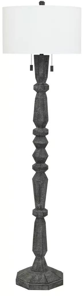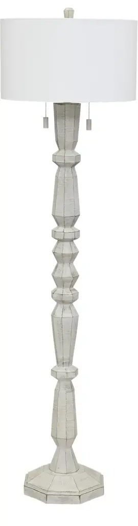 A timeless addition to any room, our Ezra floor lamp introduces elegance with its traditional silhouette available in either weathered white or distressed black finish, perfectly complemented by a linen shade. For both style and functionality, it is designed to use an E26 60W bulb and includes a convenient pull chain switch for easy operation. Flexibility in placement is ensured by the 8-foot power cord, making it a versatile choice for your lighting needs. Bulb is not included. Please select your color before adding to cart.