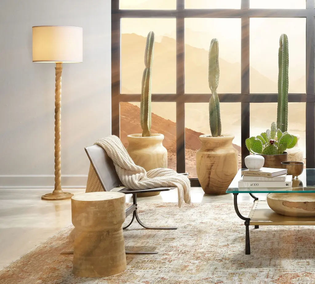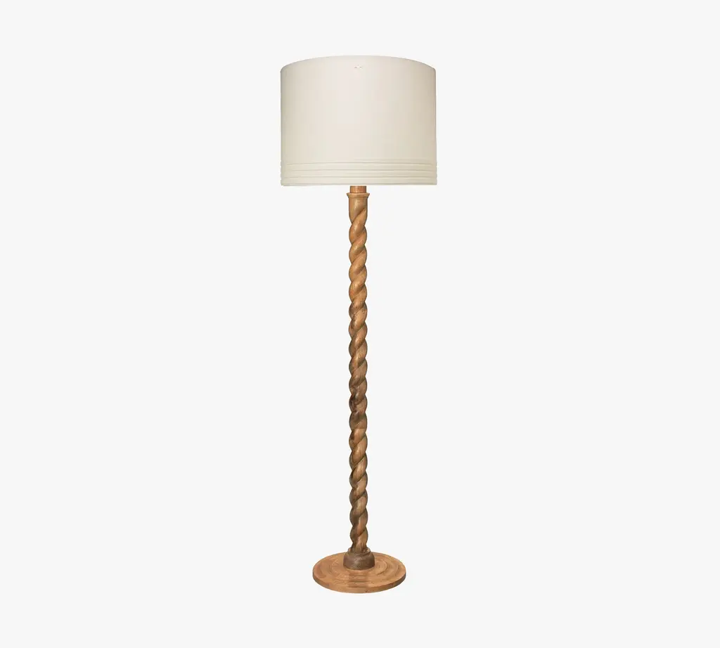 Inspired by the traditional woodworking techniques of artisans in Belgium and Holland, this floor lamp fuses modern and rustic influences. Crafted of natural mango wood, the twisting column rises upwards like a vine for a striking organic feel. Topped with a linen shade in a crisp textural counterpoint, Fawley adds a warm accent in your home office, beside a sofa or tucked into a bedroom corner.