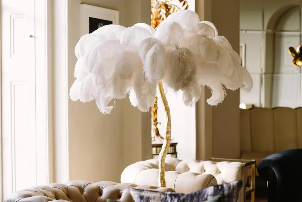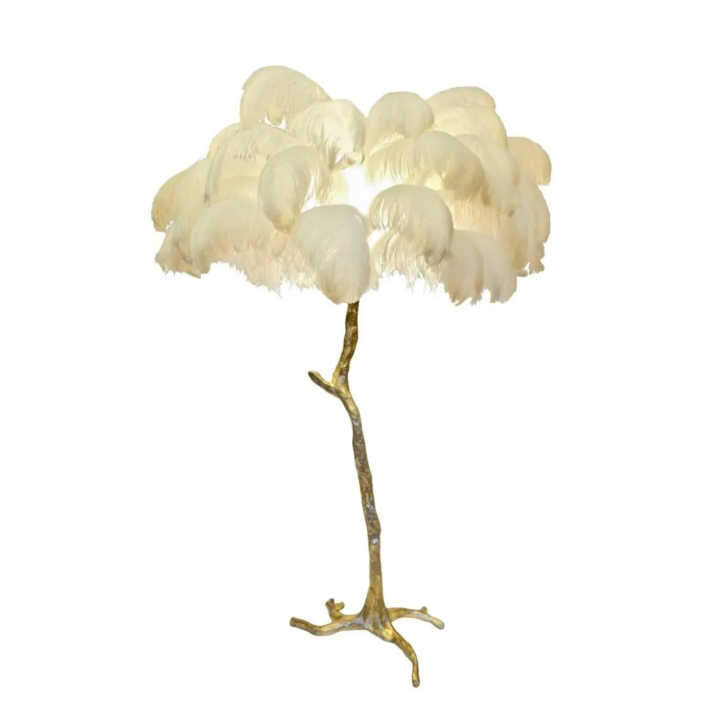 The feather floor lamp, edition piece by A Modern Grand Tour.An illuminating palm tree, resplendent with exquisite ostrich feather foliage, the feather floor lamp takes centre stage in any luxury setting and delivers the ultimate midas touch to Hollywood regency decors. A pièce de résistance among standing lamps, this lighting work of art commands attention to its exquisite design and intricate craftsmanship.