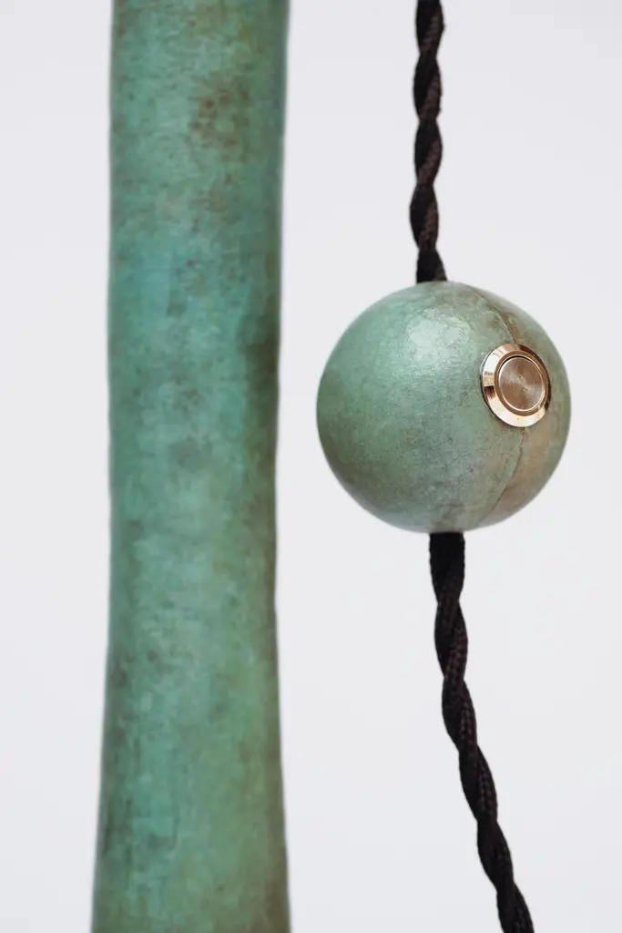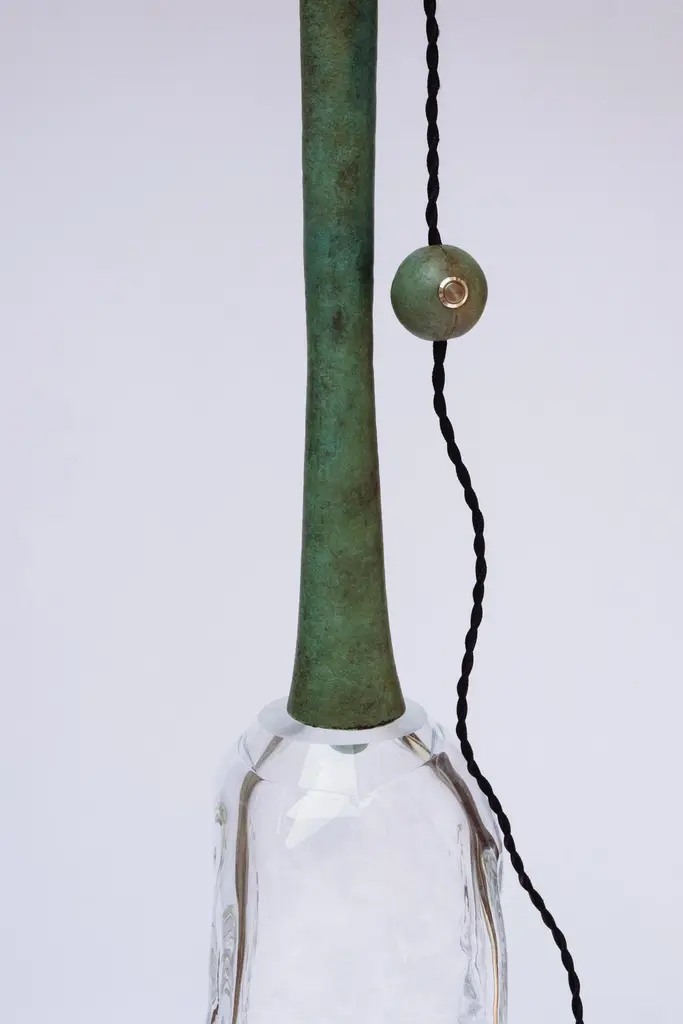 Fêle Floor Lamp by Clément ThevenotExclusively Sold By Galerie Philia.Limited Edition Of 12 Pieces.Designed by Clément Thevenot and Joyce Broussillou.Dimensions: D 35 x W 35 x H 180 cm.Materials: Cast bronze, wood texture glass, heat-resistant plastic system, driver and 24v LED.Each copy is unique, has variable dimensions due to the craft techniques used. Handmade in France between traditionally blown glassware, the brass foundry and the designer’s studio. Signed, serial number and certifcate of authenticity. Available in textured black patina, textured bronze and nickel bronze. Custom size and finishes on demand. Please contact us.All our lamps can be wired according to each country. If sold to the USA it will be wired for the USA for instance.Clément Thevenot is a French designer born in Normandy in 2000, Joyce a French designer born in 1999 in Marne.Following a dual course of study between the École Supérieure de design de Troyes and the Pontifical University of Rio de Janeiro, training which will continue to inspire them in their work.Clément runs a multidisciplinary studio where Art, Crafts and design meet.The pair were employed as designers in two separate companies.Joyce for La Rochère glassworks and Clément for Macheret foundry, this will be the genesis of the Archipel project.In 2020, the duo worked alongside Vincent Dubourg as part of an internship. It was an important experience in their career, they discovered a new way of thinking and making objects.Projects that go beyond the sole function to bring vitality into our lives. A work where the border between Art and Design blurs to give way to singular objects merging with the space around man.Inspired by the work of members of Radical Design for their critical look at our way of designing and consuming objects; the young designer plans to build a domestic world participating in the collective imagination, freeing us from rationality and standardization.