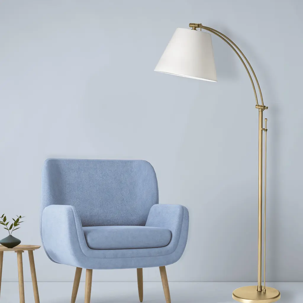 The Felix family of lighting takes a traditional floor lamp design and adds modern convenience and a stylish aesthetic. The angle of the shade can be adjusted to suit your needs. The metal frame and base in your choice of finish incorporates a straight rod that divides in two, with adjustable arms that arc out to the fabric shade. An empire shade completes the fashionable silhouette. With its practical features and clean modern style, Felix lighting is a welcome addition to your living room, bedroom or office space.
