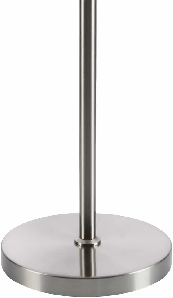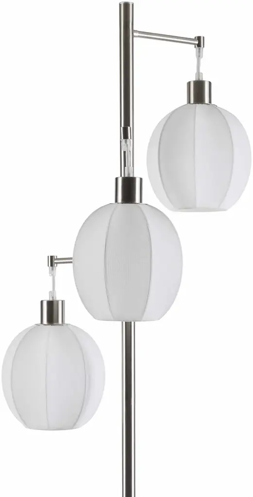 Collection: Ferzikovo Colors: Metallic - Nickel, White, Translucent Material: Body: Iron / Base: Iron / Shade (Outside): Linen / Shade (Inside): Linen Styles: Contemporary Made In: China Lighting Type: Accent Floor Lighting Base: Iron Base Color: Metallic - Nickel Shade Material: Linen, Linen Shade Color: White, White Cord Length: 8' Switch Type: Foot Step Number of Bulbs: 3 Socket Type: E-26 Bulb Wattage: 60W