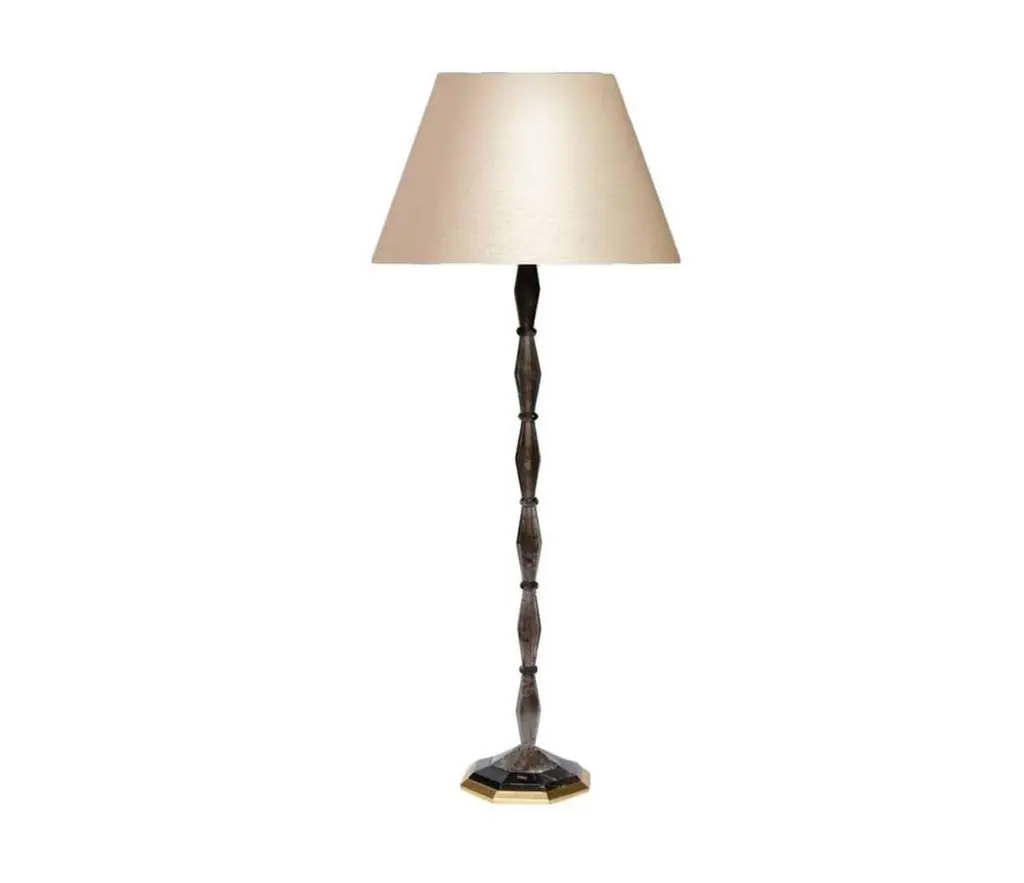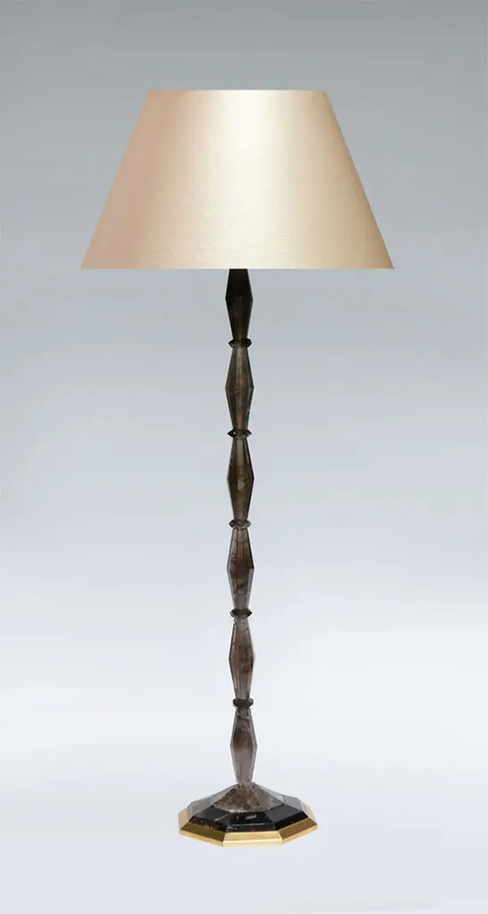A fine carved Dark rock crystal floor lamp, created by Phoenix Gallery, NYC.Measures: 70in. height.(Lampshade not included).