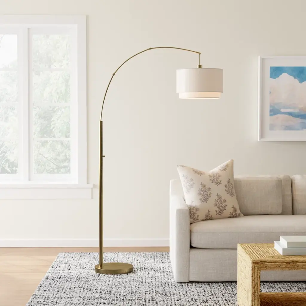 Illuminate your favorite reading nook or cozy corner with this elegant floor lamp. Featuring a single light with a poly-blend drum shade, it casts a warm, inviting glow in any space. The metal base and arc design add a touch of sophistication, while the convenient switch on the lamp base ensures easy operation. This versatile floor lamp is designed for both home and professional settings, making it a stylish addition to any room. Just remember to pick up a bulb (not included) to complete the look.