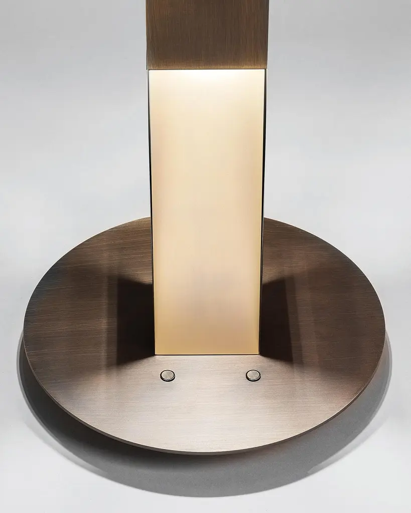 Please note that VAT is not included in the price.As a loved one, an everyday object must be able to reassure and inspire us, it must be simple, unobtrusive and yet contain harmonic resonances to be discovered in time: the time of its life with us. Floor lamp with two-light emissions: one indirect and diffused, the other indirect and reflected, both adjustable in their intensity. The adjustment allows an innumerable variety of lights, from themost intimate to the most general and widespread, to the most scenic, giving pleasant and surprising sensations and emotions.Born in Milano in 1955, Cino Zucchi earned a B.S.A.D. at the Massachusetts Institute of Technology (Cambridge, Mass.) in 1978 and a Laurea in Architettura at the Politecnico di Milano in 1979, where he is currently Chair Professor of Architectural and Urban design. He has been Visiting Professor at the Harvard Graduate School of Design in 2013. He is the author of the books L’architettura dei cortili milanesi 1535-1706 (Electa 1989), Asnago e Vender. Architetture e progetti 1925-1970 (Skira 1999) in 2014 he has was the curator of the Italian Pavilion at the 14th edition of the Biennale Architettura in Venice. He is currently a member of the scientific committee of the XXI Triennale and the president of the Jury of the European Union Prize for Contemporary Architecture – Mies van der Rohe Award. Together with his studio CZA, he has designed and built many Industrial, commercial, residential and public buildings, public spaces, master plans and renewals of Industrial and historical areas nationally and internationally, including the master plan for the Keski Pasila area in Helsinki, the Salewa Headquarters in Bozen, the new Lavazza offices, and the renovation and Expansion of the MAUTO Museum in Turin.Additional information: Color: Bronze and brass, Materials: Steel structure, purpose: Diffuser and direct light floor lamp. The lamp is indoor use only, light source: 12 LED boards, dimmer light; Wattage: 11 x 2.3W diffused, 1 x 20W indirect; Voltage: 24V, Lumen: 2226, dimension is 2120 x 350 mm.Please note all lamps are supplied with European plugs and 220v. US plugs can be supplied and changed to 110v at the client's request.