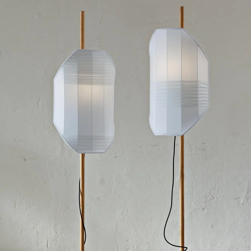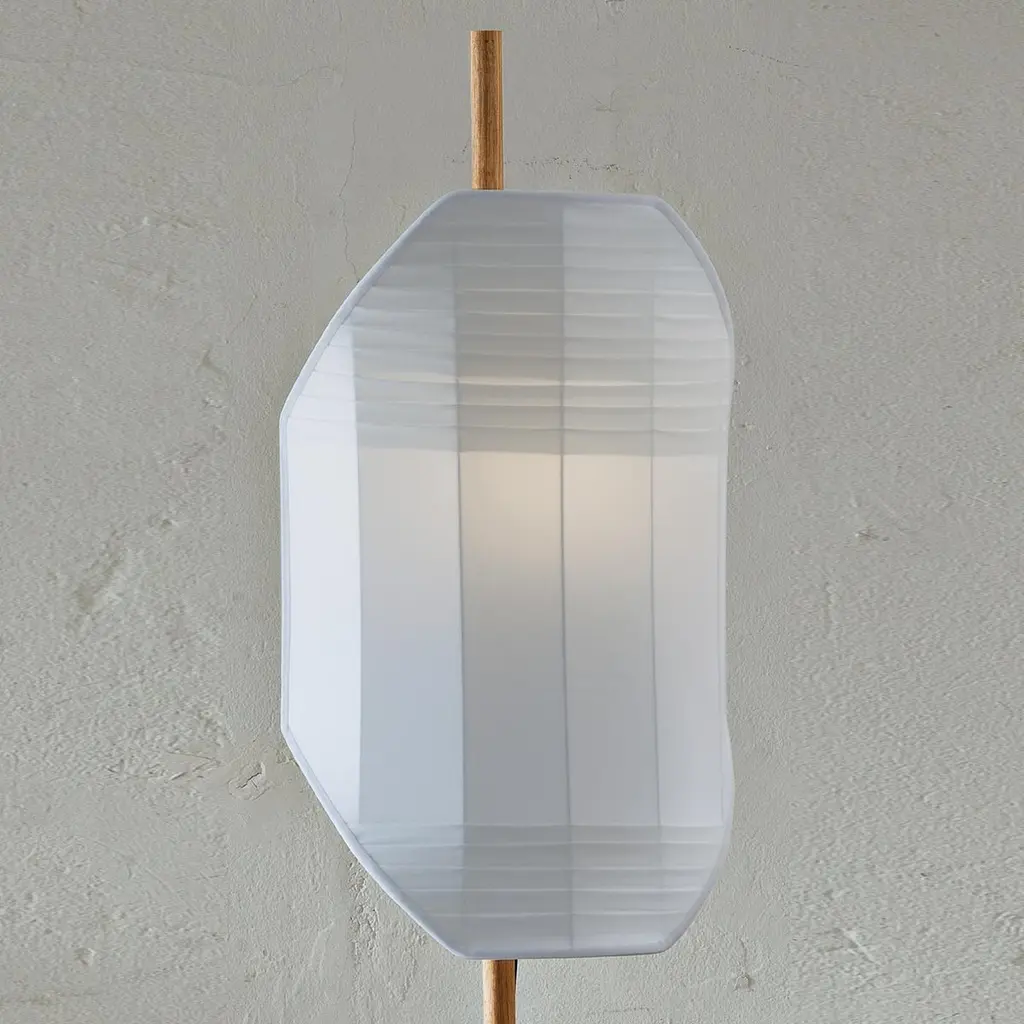 This lamp takes inspiration from the image of a flag hammered into a stone, as the gesture of marking a place off the beaten track with a visible sign. A luminescent screen hung from an oak pole, tucked into a piece of circular "ceppo lombardo" stone. The primary colors used for the cotton screens are reminiscent of signal flags and the pleated detailing creates a subtle graphic pattern. The lampshade is in hand-pleated cotton fabric. Ask the Concierge for details.
