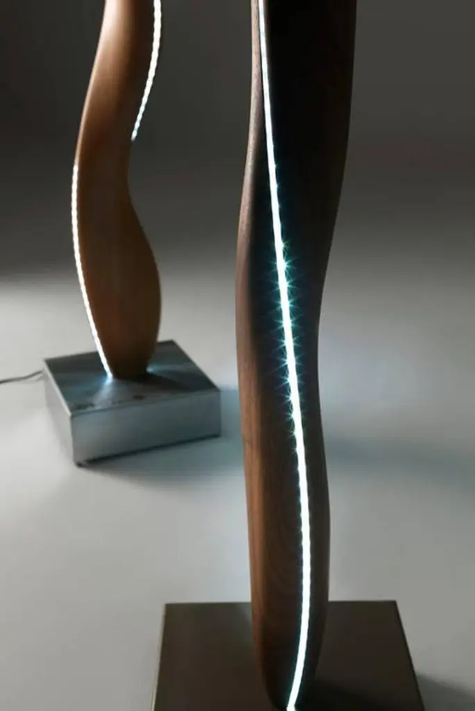 Flame Floor Lamp In Natural Solid Walnut With Led Lights Strip