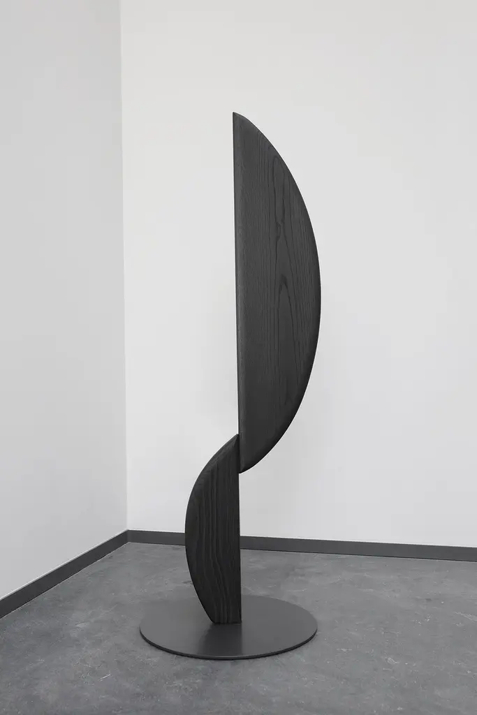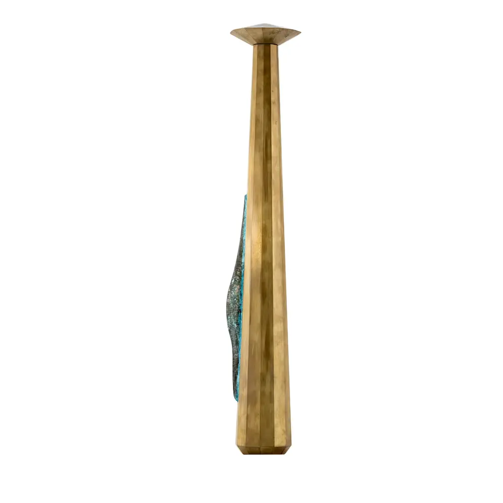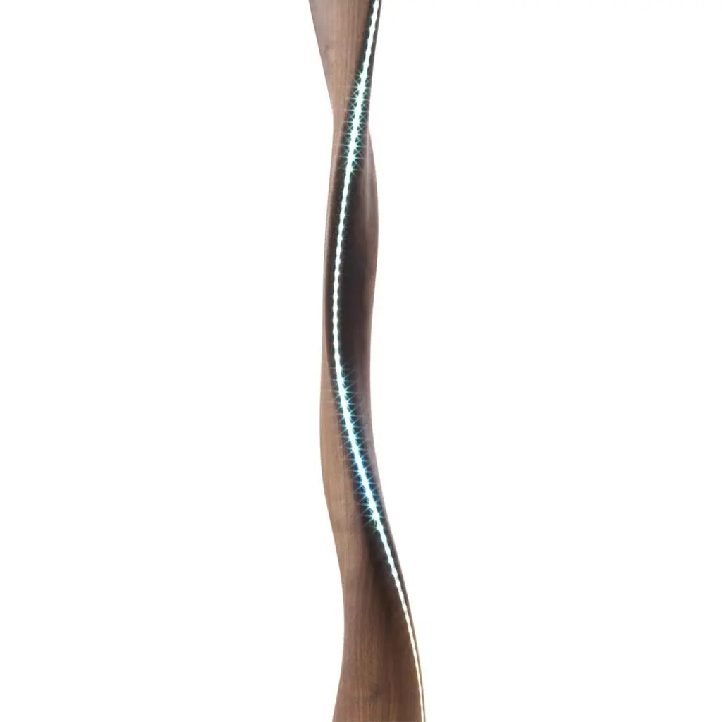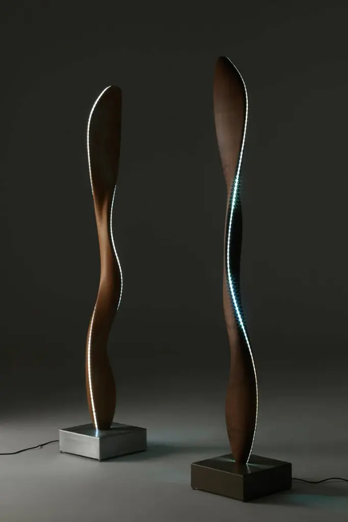Floor lamp Flame in natural solid walnut,polished and worked wood, with led lights strip,cold led lights: 4000°K. Base in lacquered iron.Also available with polished stainless steel base,on request.Also available in solid oak wood, on request.