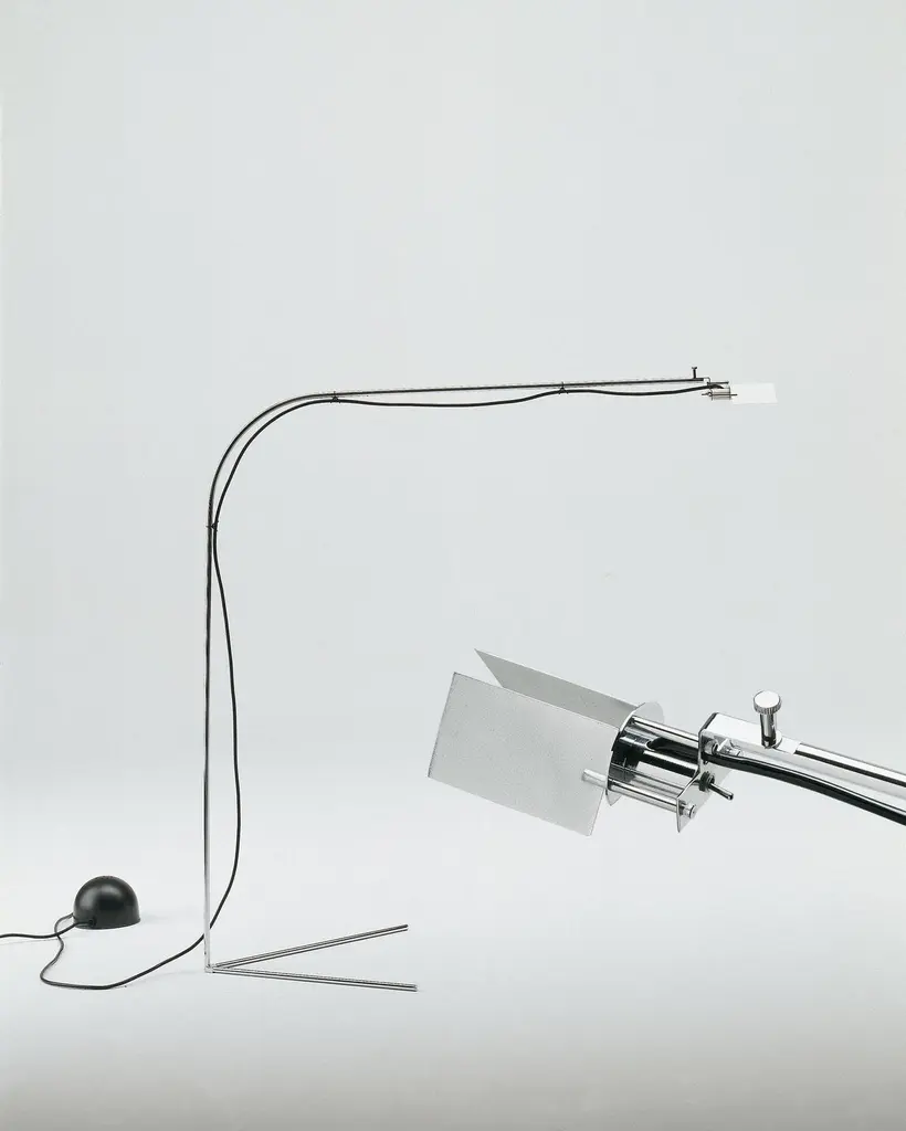 Flamingo lamp by Alvaro Siza VieiraDimensions: D 49 x W 95 x H 99 cm Materials: Chromed iron bar structure which can be disassembled. Adjustable fine aluminum wings. Painted in a silver matte grey to control light. Dimmer included. Includes: One LED bulb 9W G9, included. Power 9W - 350 lumens - T 3000K. · Certified CE UNE-EN 60598-1. Energetic value A+.All our lamps can be wired according to each country. If sold to the USA it will be wired for the USA for instance.What distinguishes it from any other lamp is its use. Its unusual height, the quality of its light, the neutrality and apparent fragility of its variable and detachable structure, the mobility of its very delicate wings, all allow for unsuspected uses. It can be a substitute for a candle at dinner, light up a picture or book rest, allows reading in bed without disturbing the possible bedfellow. The extraordinary thing about the Flamingo cannot be appreciated in photographs, nor even in detailed design plans.In 1972, a group of young architects and designers from Barcelona created BD with the aim of producing and marketing furniture and other objects for our projects, with complete creative freedom and with a criterion that has turned out to be quite different from the norm at companies in the sector, regarding both the shape and function.