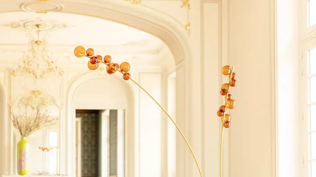Fleur de Coton, designed by Alessio Bassan, evokes the stalk of a cotton flower, gently bending in the wind, creating a soft yet intense light. Available as a suspension, straight floor lamp and table lamp.
