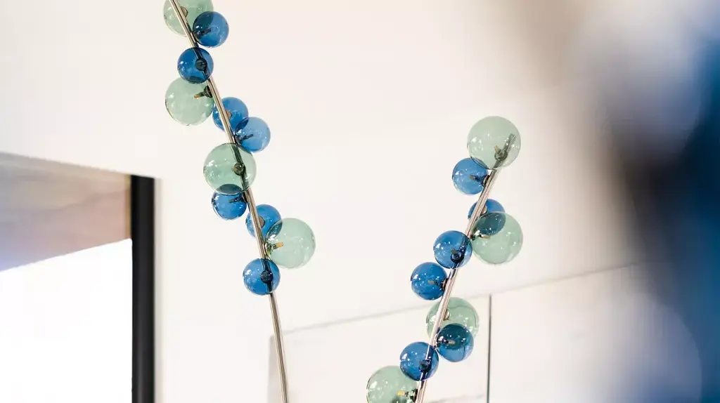 Fleur de Coton, designed by Alessio Bassan, evokes the stalk of a cotton flower, gently bending in the wind, creating a soft yet intense light. Available as a suspension, straight floor lamp and table lamp.